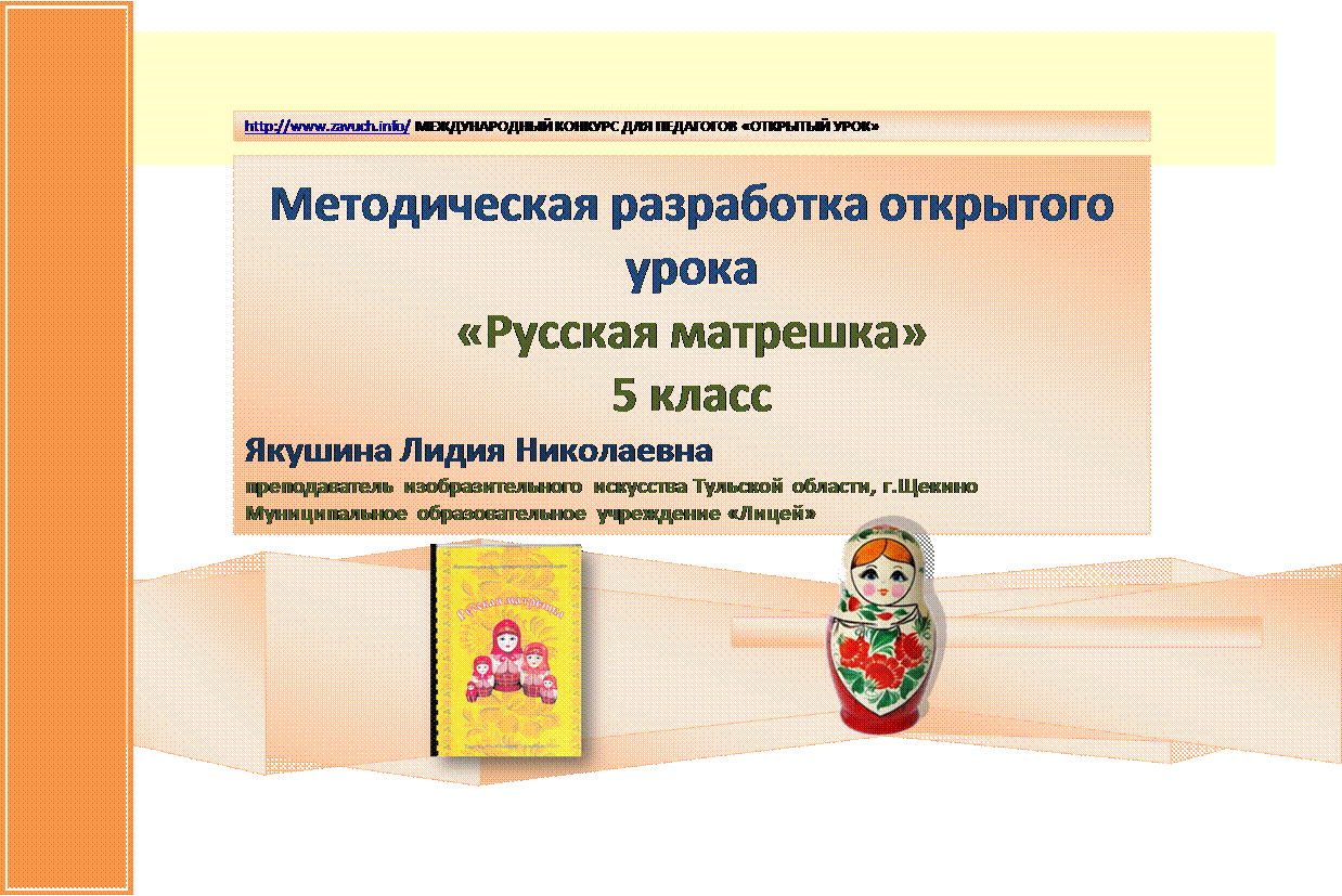 Цель урока: воспитывать любовь к народному искусству, уважение к народному мастеру, создающему красоту на радость людям. Знакомство с русской народной матрешки.