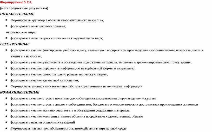 — формировать умение фиксировать учебную задачу, связанную с восприятием произведения изобразительного искусства, цвета в жизни и в искусстве;