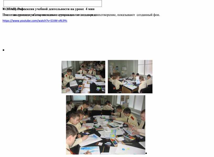 V ЭТАП. Рефлексия учебной деятельности на уроке 4 мин После завершения работы несколько суворовцев читают свое стихотворение, показывают созданный фон.