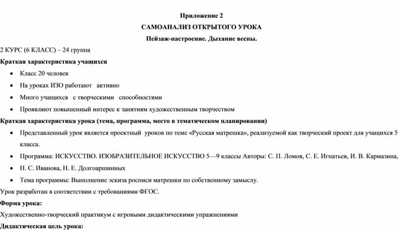 САМОАНАЛИЗ ОТКРЫТОГО УРОКА