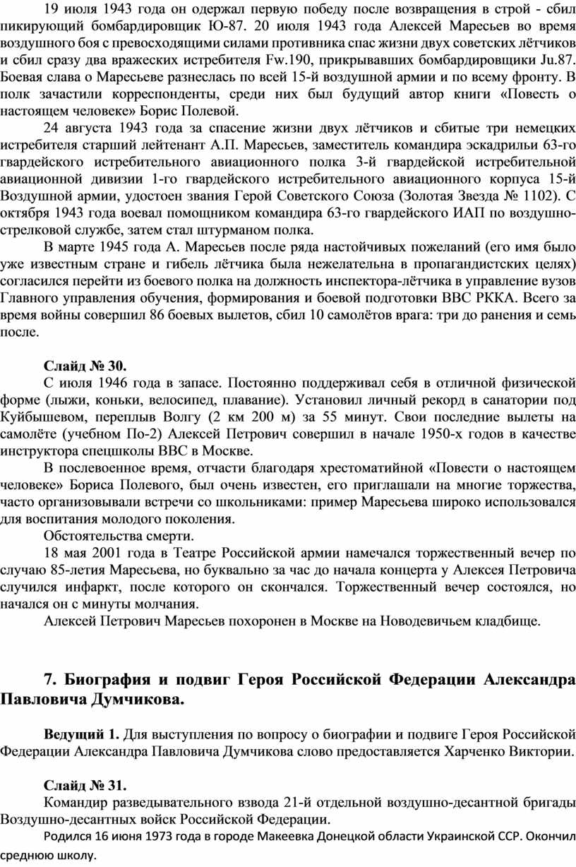 7. Биография и подвиг Героя Российской Федерации Александра Павловича Думчикова.
