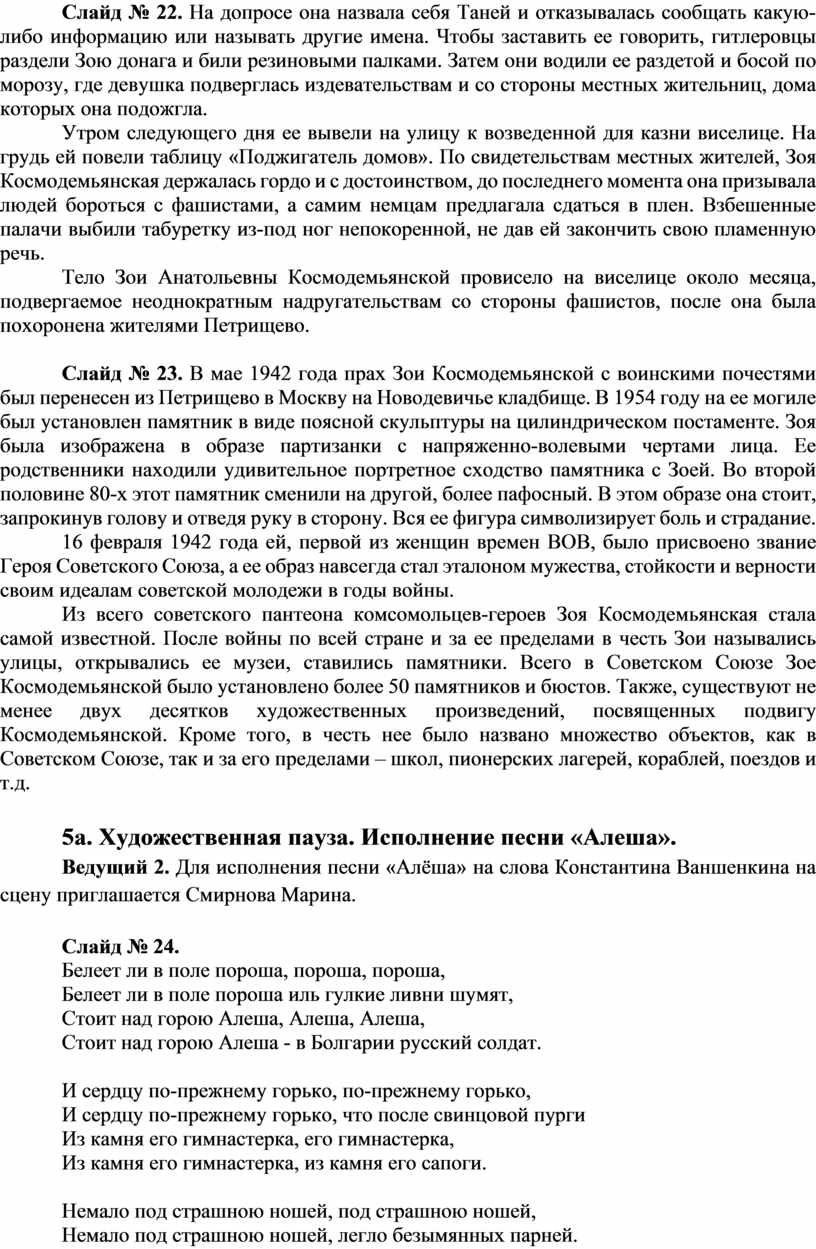 5а. Художественная пауза. Исполнение песни «Алеша».