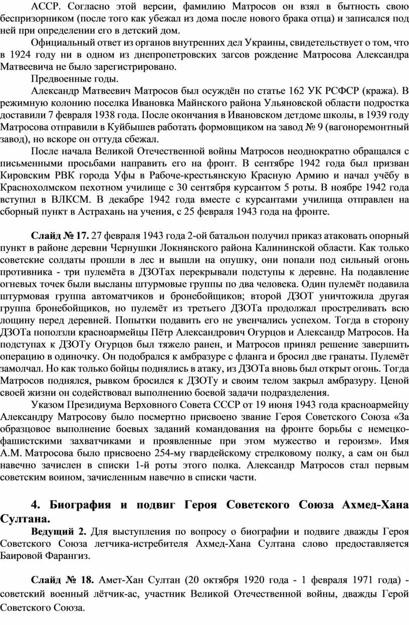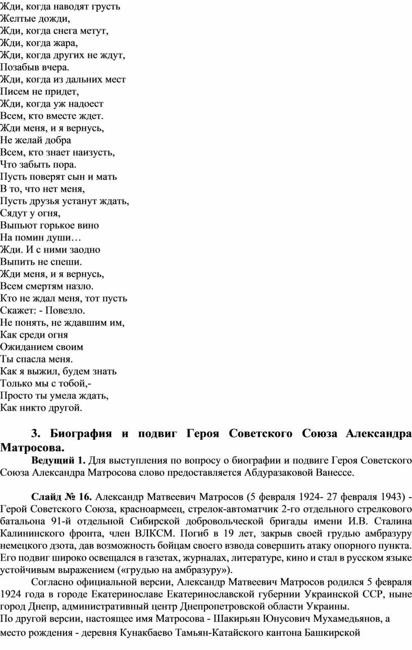 3. Биография и подвиг Героя Советского Союза Александра Матросова.