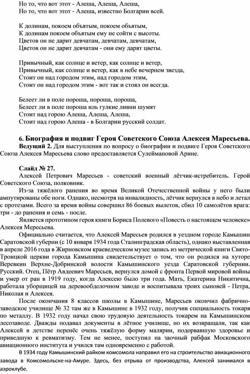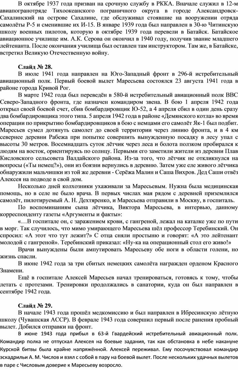 6. Биография и подвиг Героя Советского Союза Алексея Маресьева.