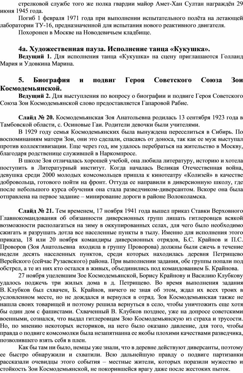 5. Биография и подвиг Героя Советского Союза Зои Космодемьянской.