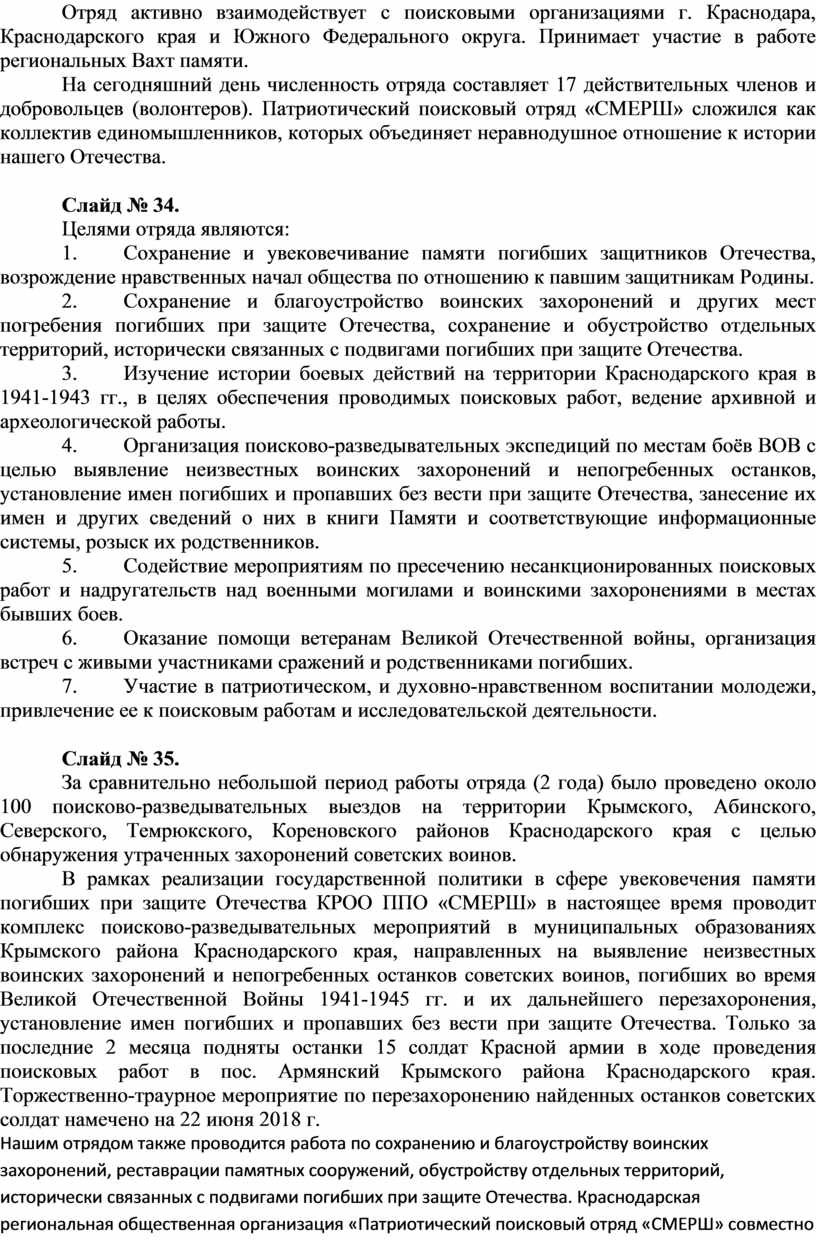 Ведущий 1. Для выступления по вопросу о деятельности поискового отряда «Смерш» слово предоставляется Нагорновой Надежде.