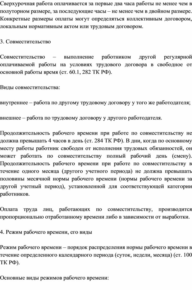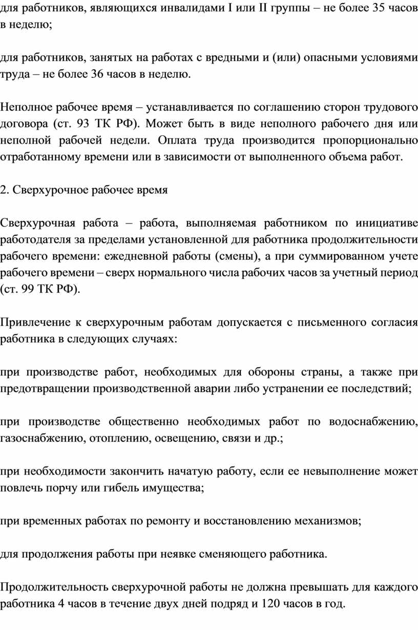 2. Сверхурочное рабочее время.