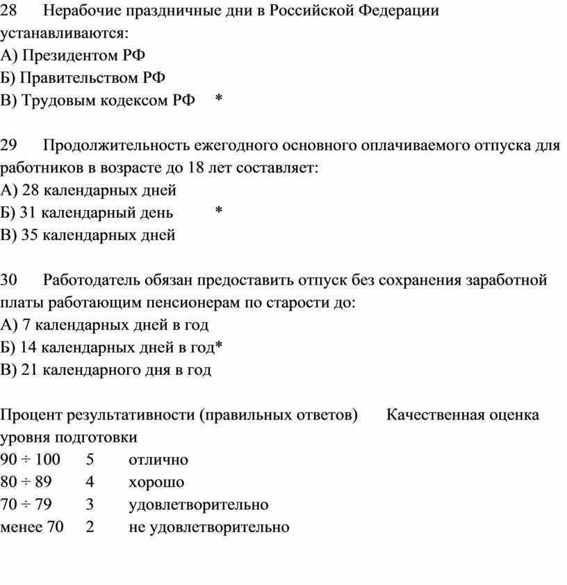 29 Продолжительность ежегодного основного оплачиваемого отпуска для работников в возрасте до 18 лет составляет: