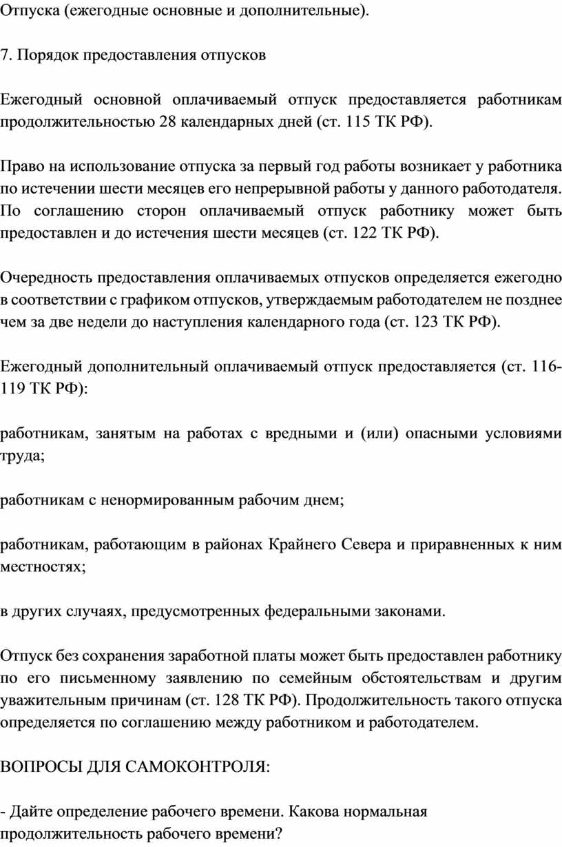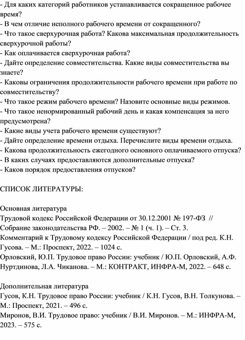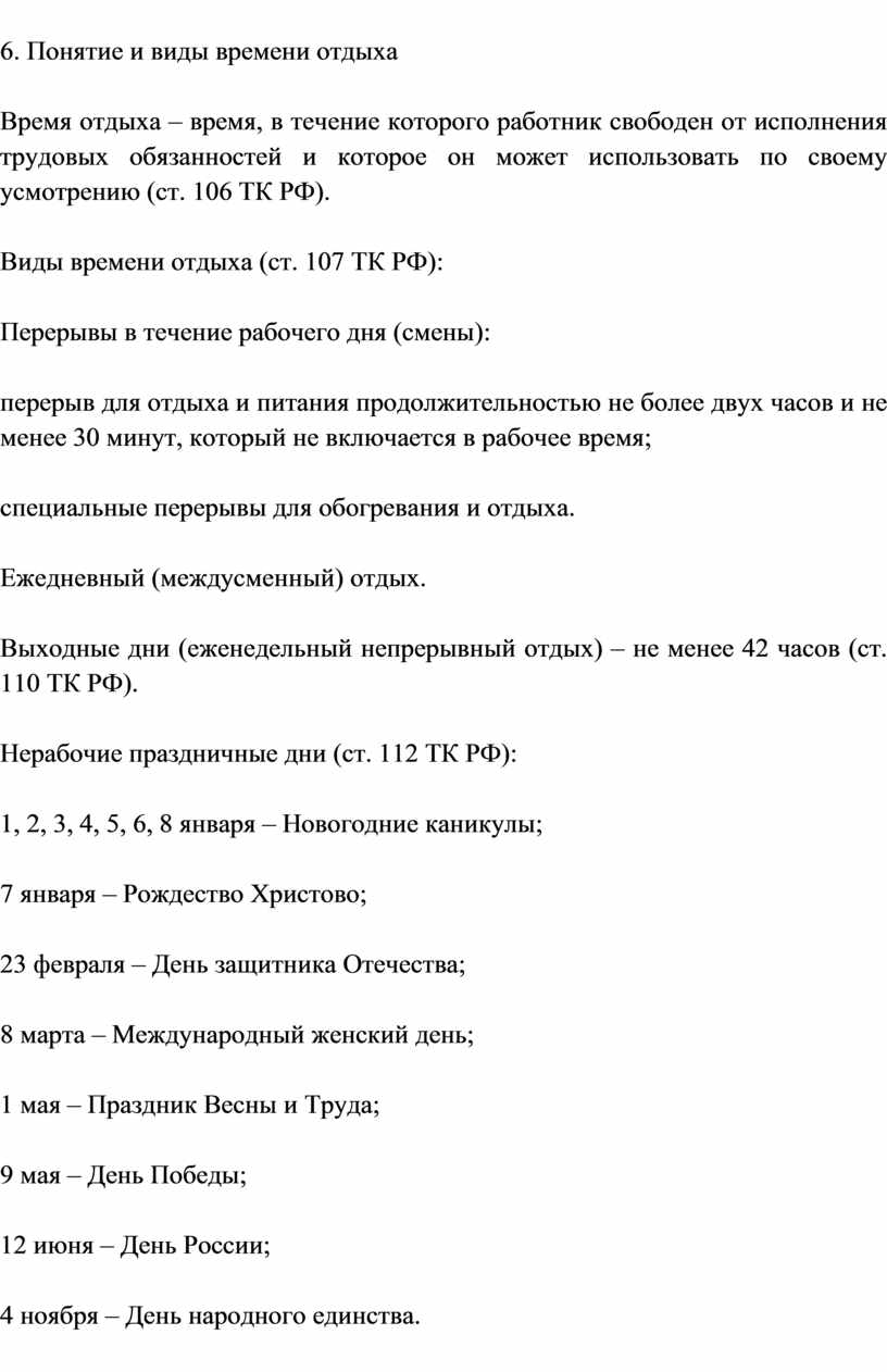 1. Понятие рабочего времени, его виды.
