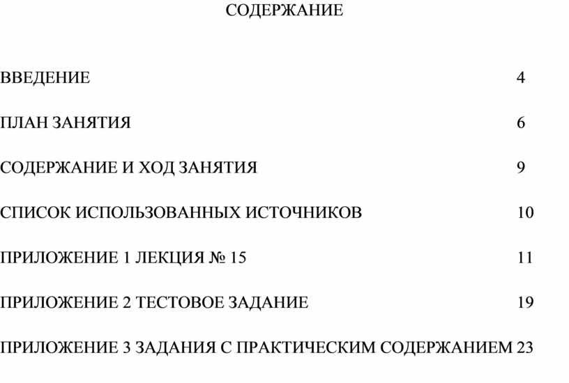 Четкая структура и полнота содержания. Разработка содержит все необходимые элементы: введение с обоснованием актуальности, подробный план занятия, описание хода занятия, список литературы, а также три приложения (текст лекции, тестовые задания, практические задачи). Такая структура обеспечивает методическую целостность и удобство использования.