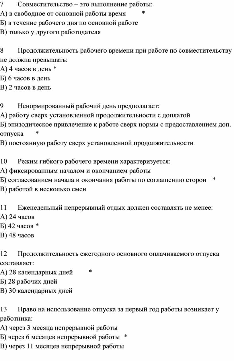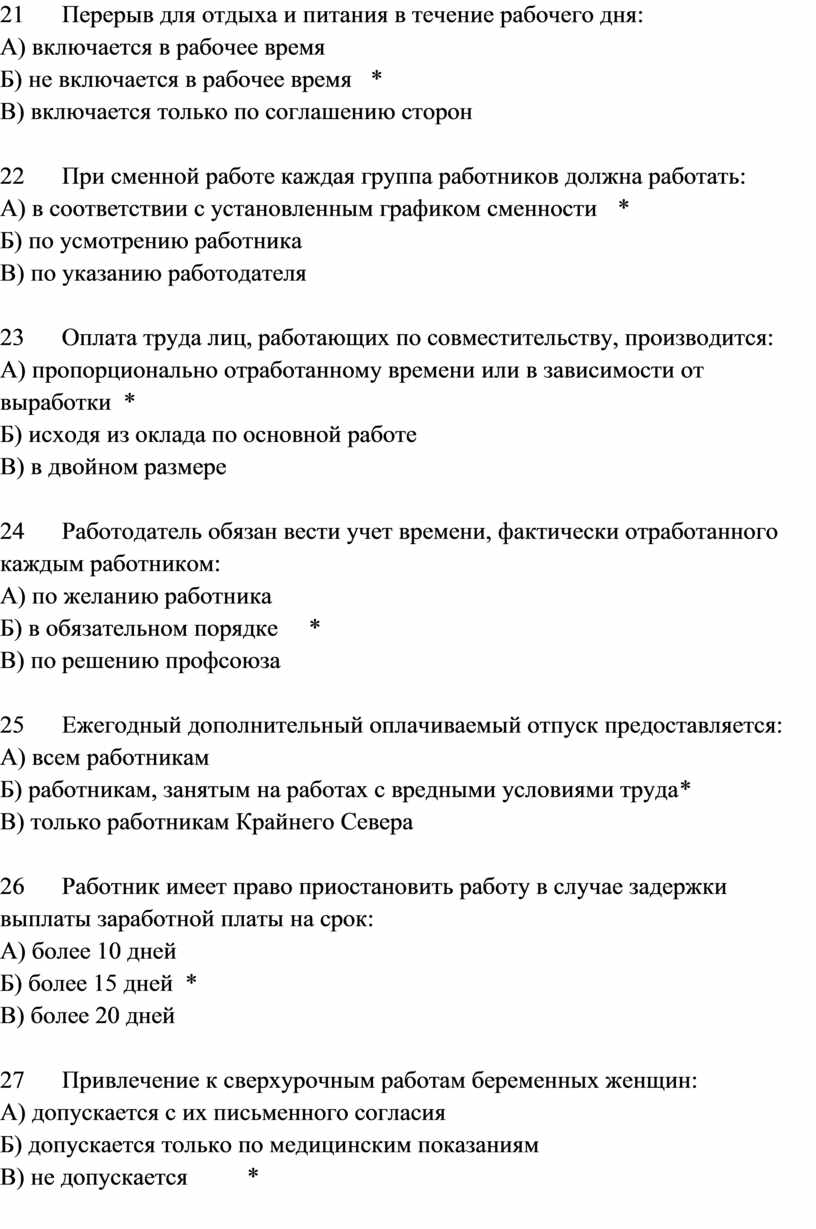 - Контрольные вопросы к лекции на тему «Трудовой договор»