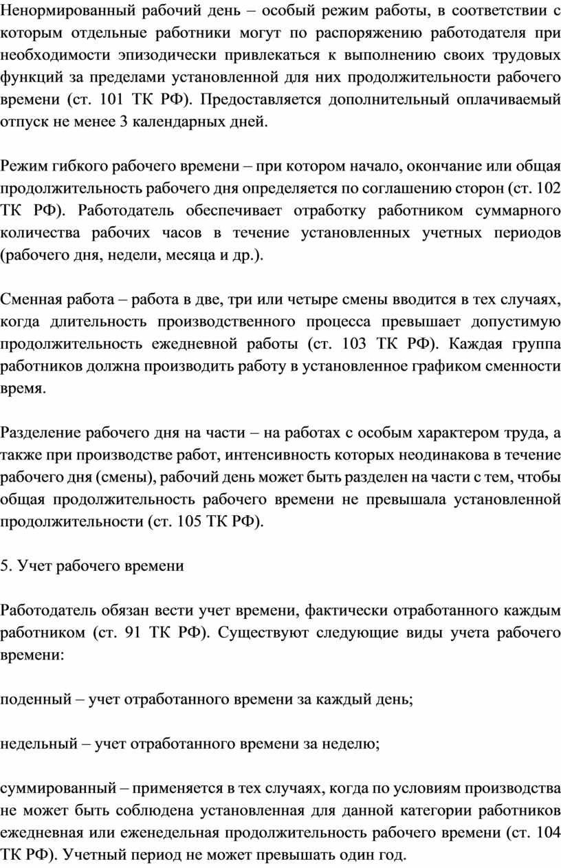 4. Режим рабочего времени, его виды.