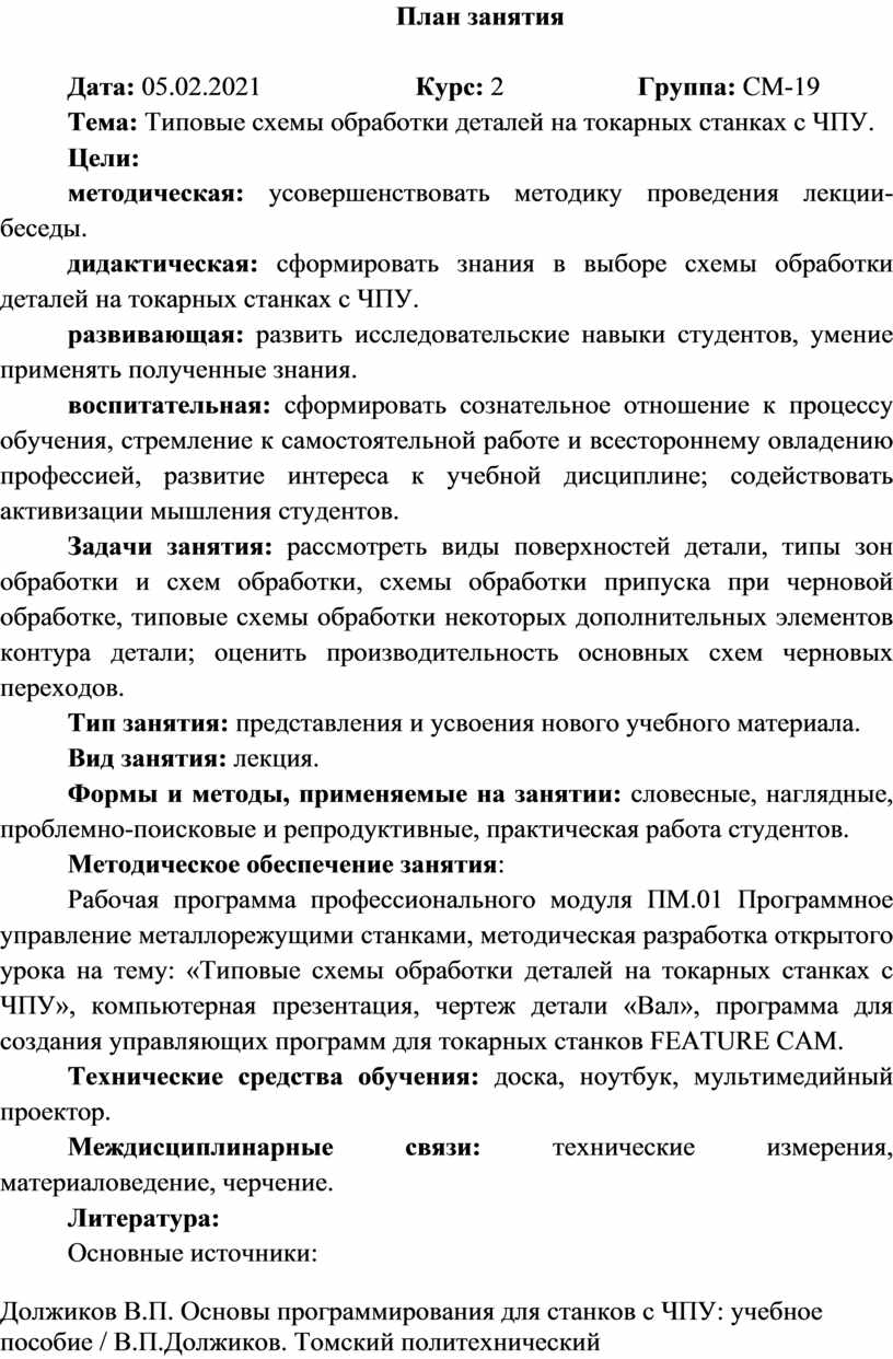 Рабочая программа профессионального модуля ПМ.01 Программное управление металлорежущими станками, методическая разработка открытого урока на тему: «Типовые схемы обработки деталей на токарных станках с ЧПУ», компьютерная презентация, чертеж детали «Вал», программа для создания управляющих программ для токарных станков FEATURE CAM.