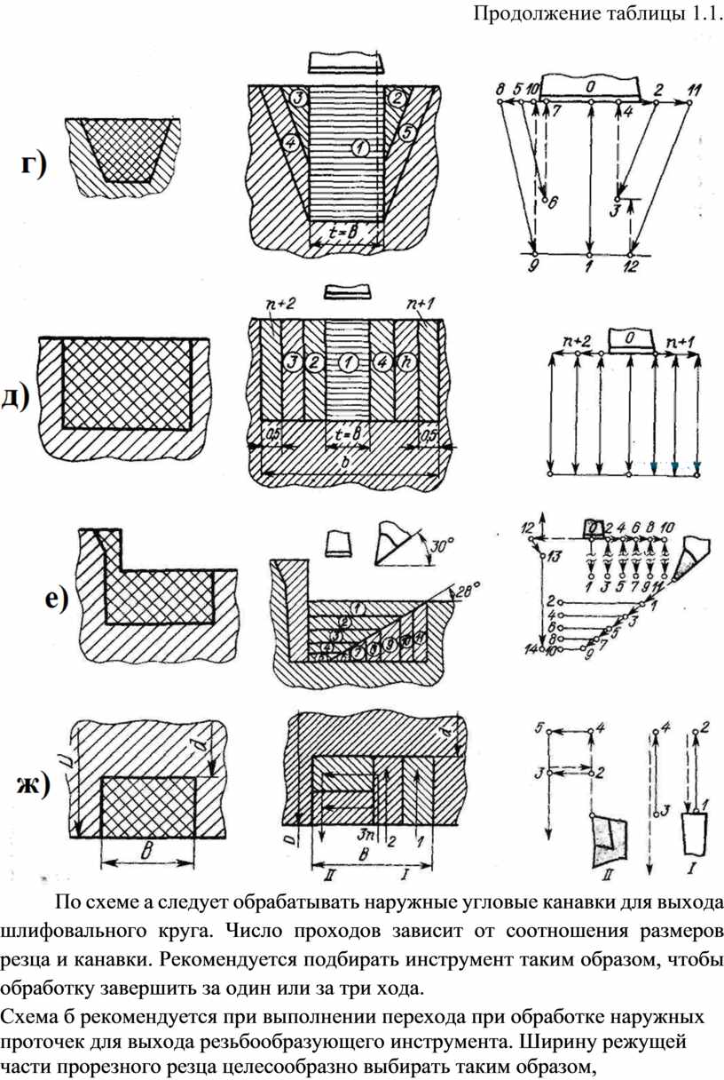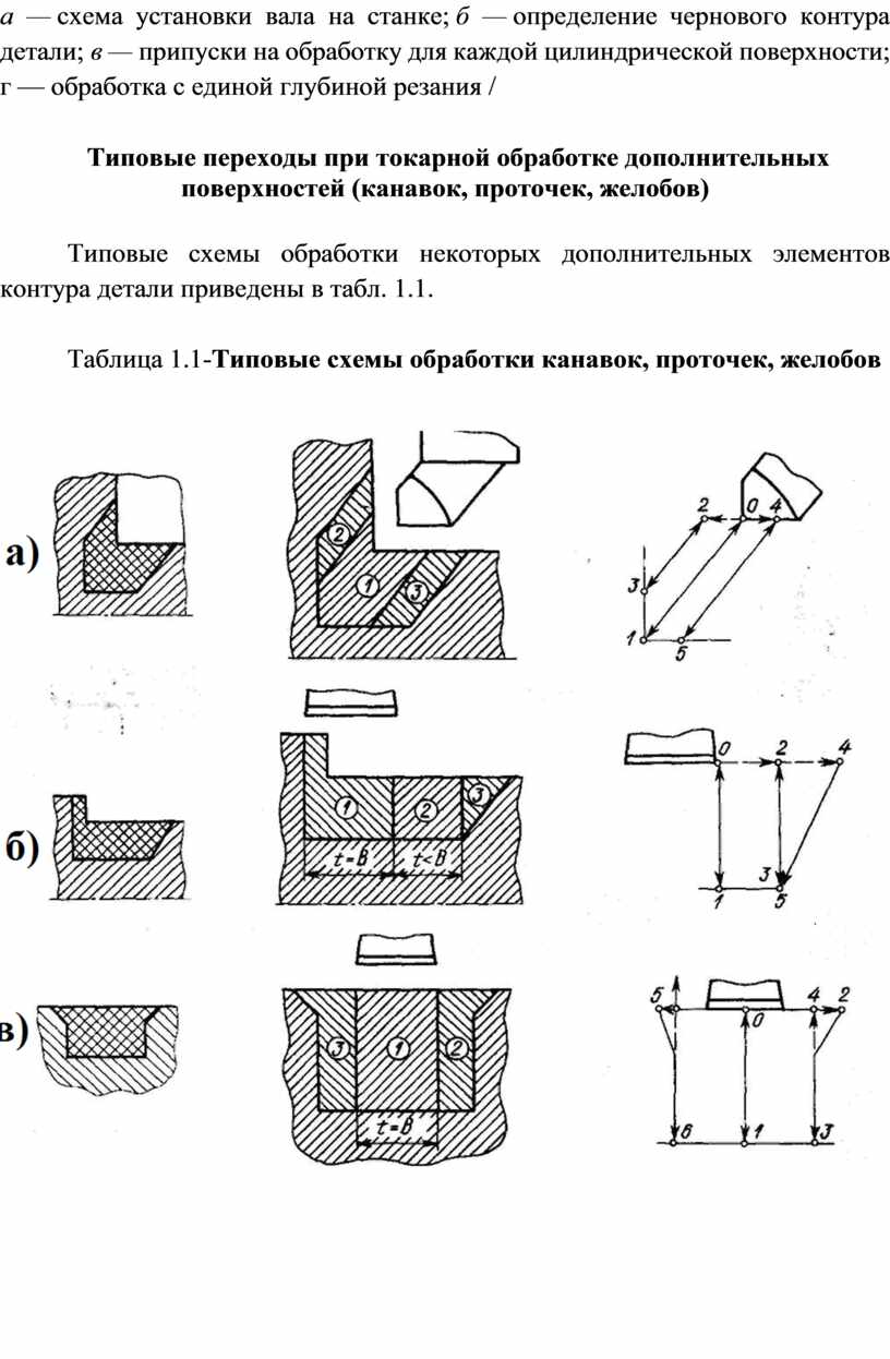 Таблица 1.1-Типовые схемы обработки канавок, проточек, желобов