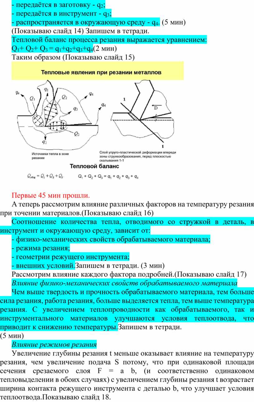 Чтобы правильно выбрать режим резания и инструмент, надо знать законы теплообразования и распределения тепла. (3 мин)