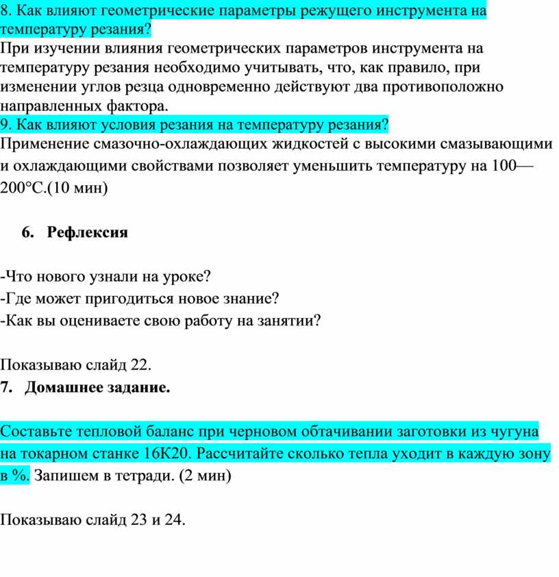 Начнем с температуры резания. (Показываю слайд8) Напишем в тетради.