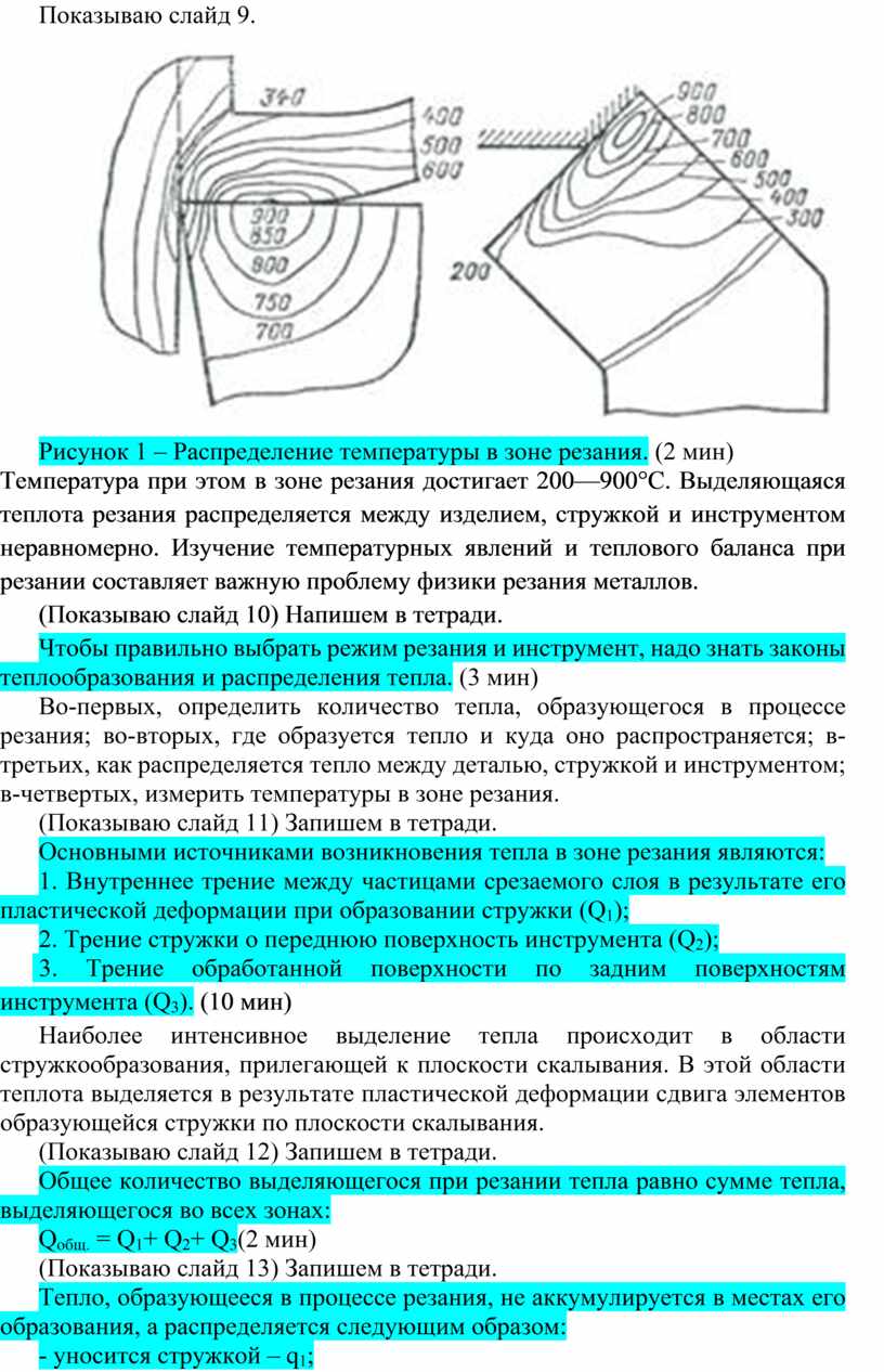 Под температурой резания понимают среднюю температуру на конкретных площадках режущего инструмента.(3 мин)