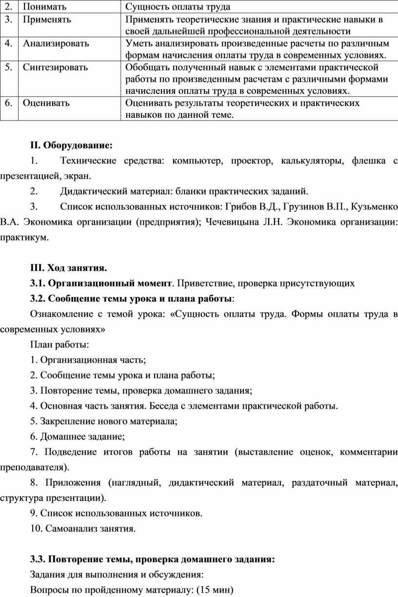Обобщать полученный навык с элементами практической работы по произведенным расчетам с различными формами начисления оплаты труда в современных условиях. |