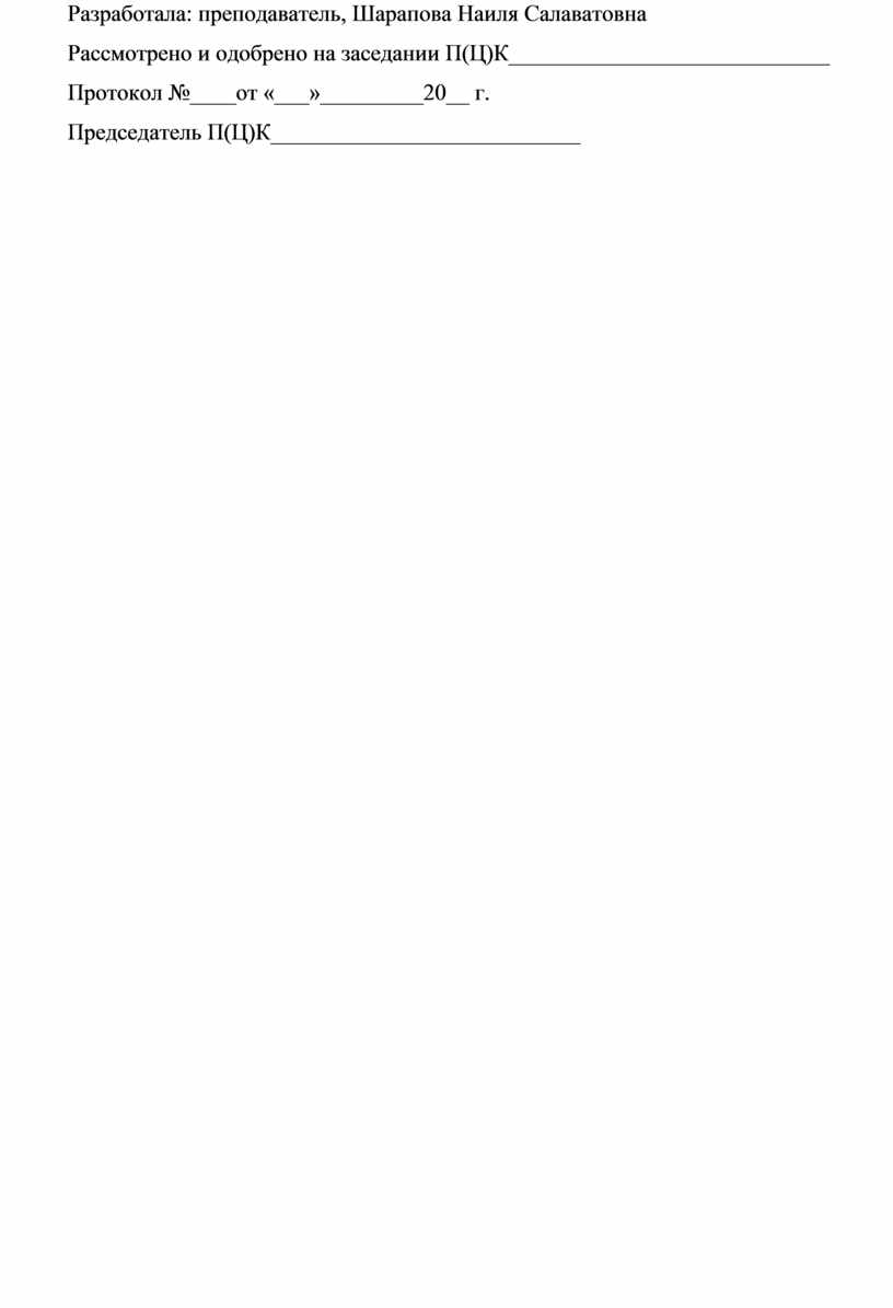 Разработала: преподаватель, Шарапова Наиля Салаватовна