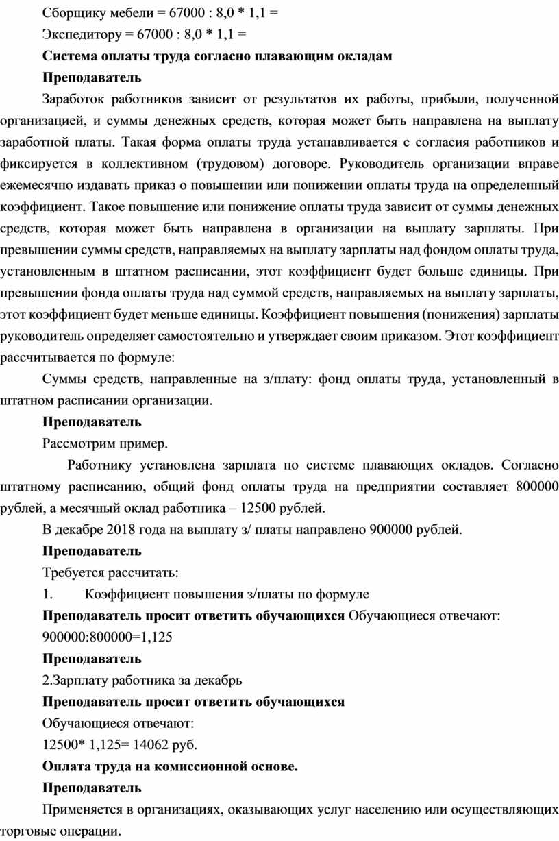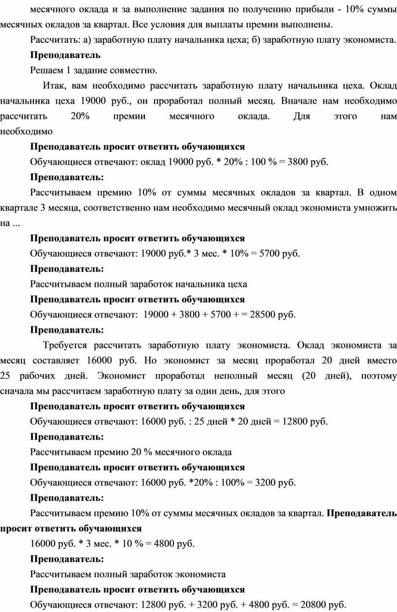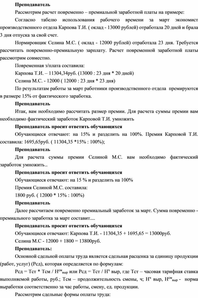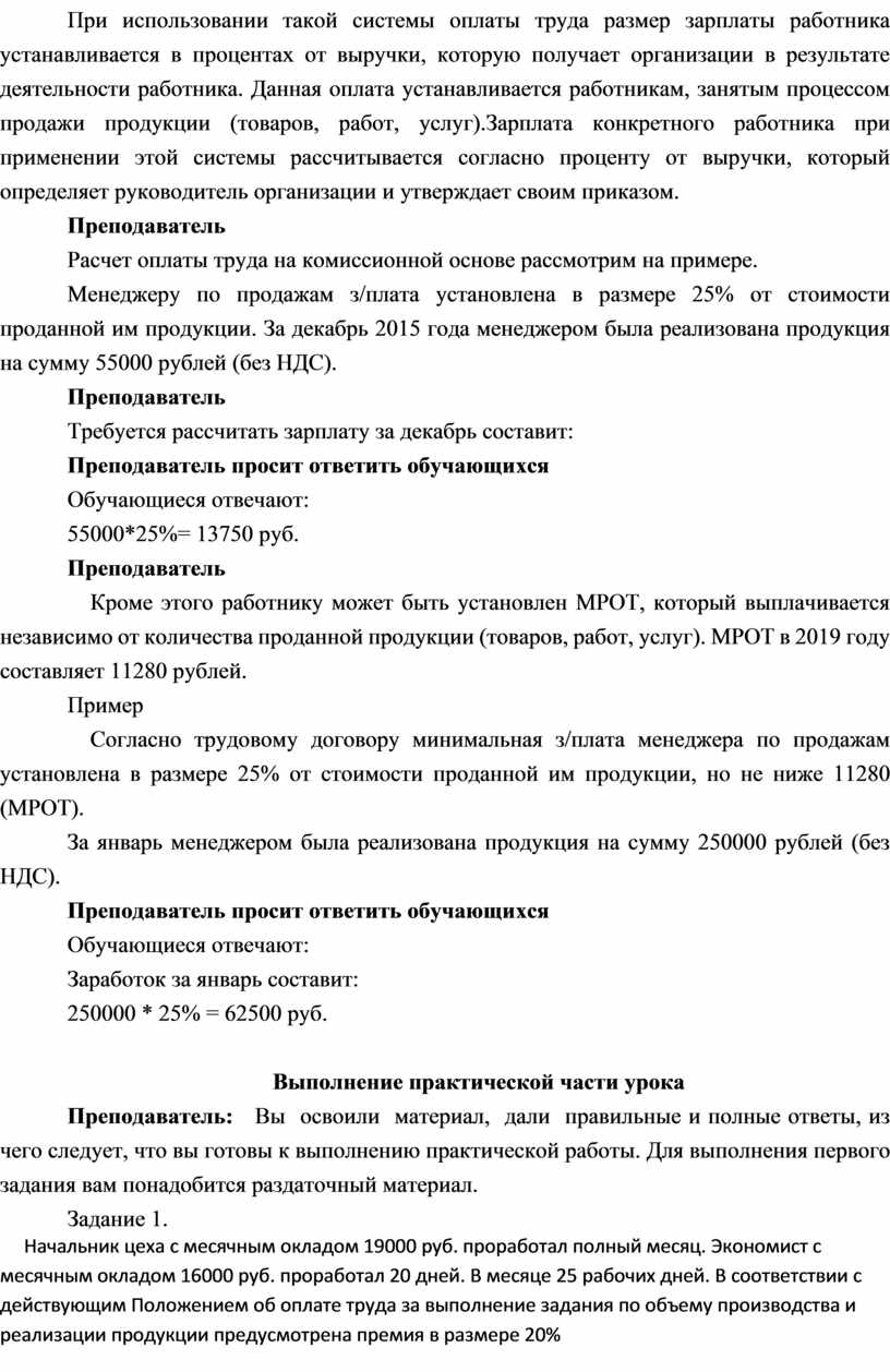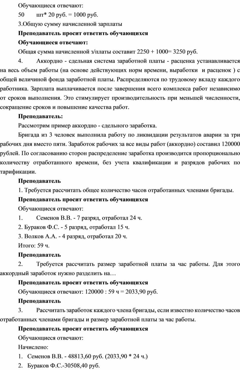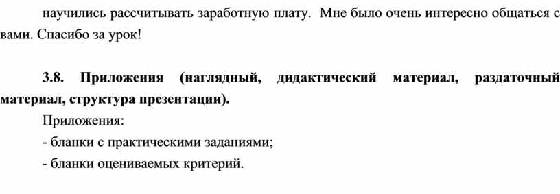 Преподаватель: Я благодарю вас за совместную деятельность на этом занятии. Закрепление теоретического материала и правильно выполненные практические задания позволяют сделать выводы, что вы овладели практическими умениями, а именно научились рассчитывать заработную плату. Мне было очень интересно общаться с вами. Спасибо за урок!