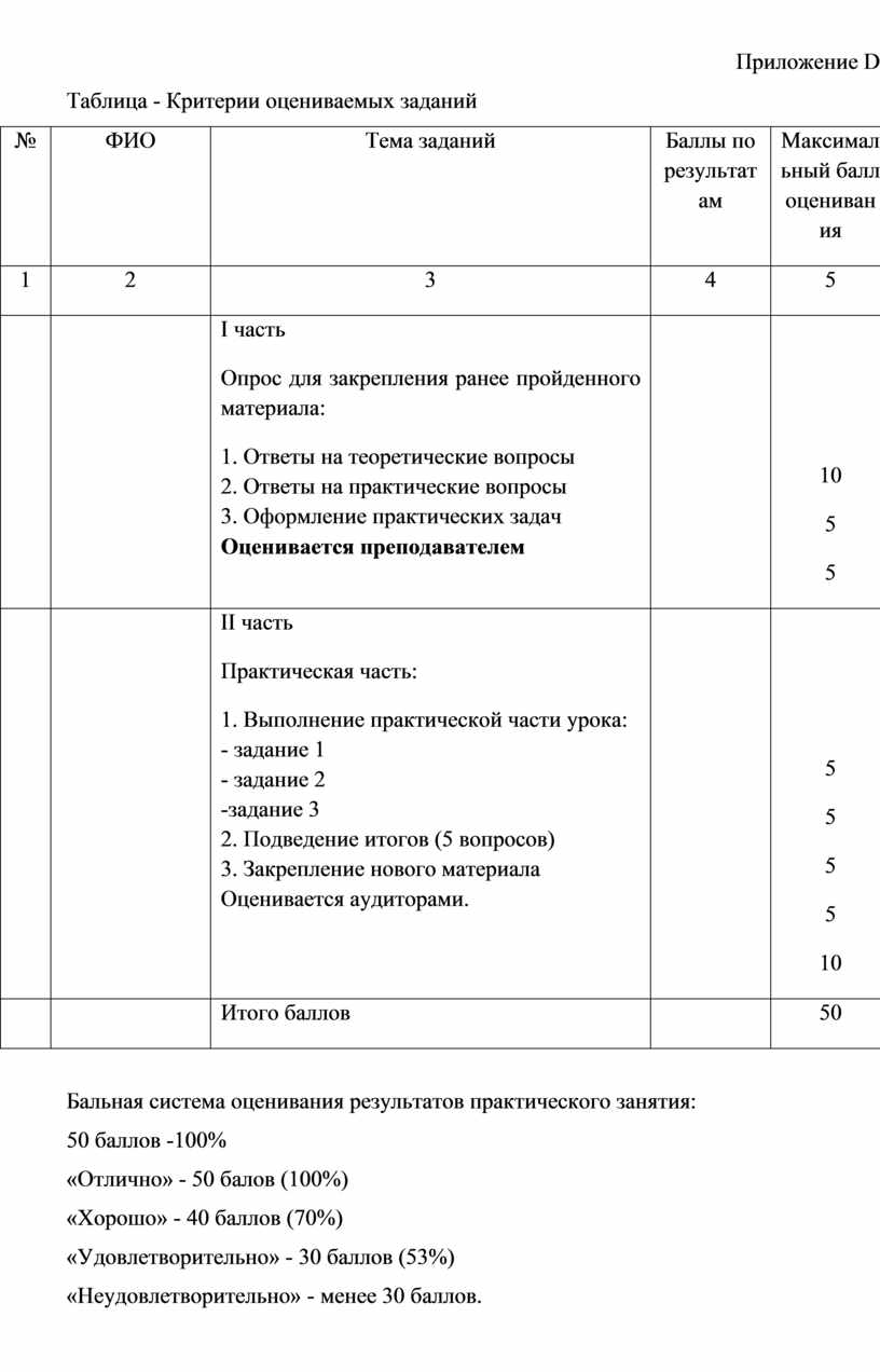 За каждый правильный устный ответ обучающийся получит 1 балл, за каждую правильно выполненную практическую задачу 1 балл (всего в практической работе необходимо выполнить самостоятельно 4 задачи).