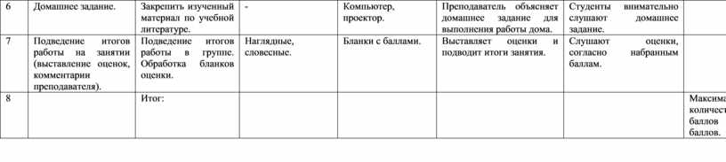 7. Подведение итогов работы на занятии (выставление оценок, комментарии преподавателя).