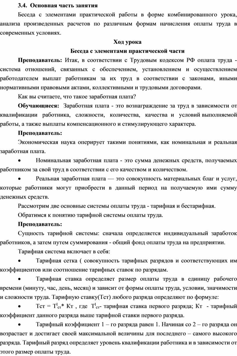 Основная цель занятия: Сформировать умения и навыки в системе отношений, связанных с обеспечением, установлением и осуществлением работодателем выплат работникам за их труд в соответствии с законам. |