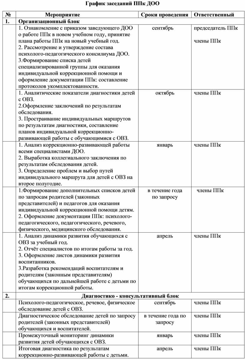 График заседаний ППк ДОО