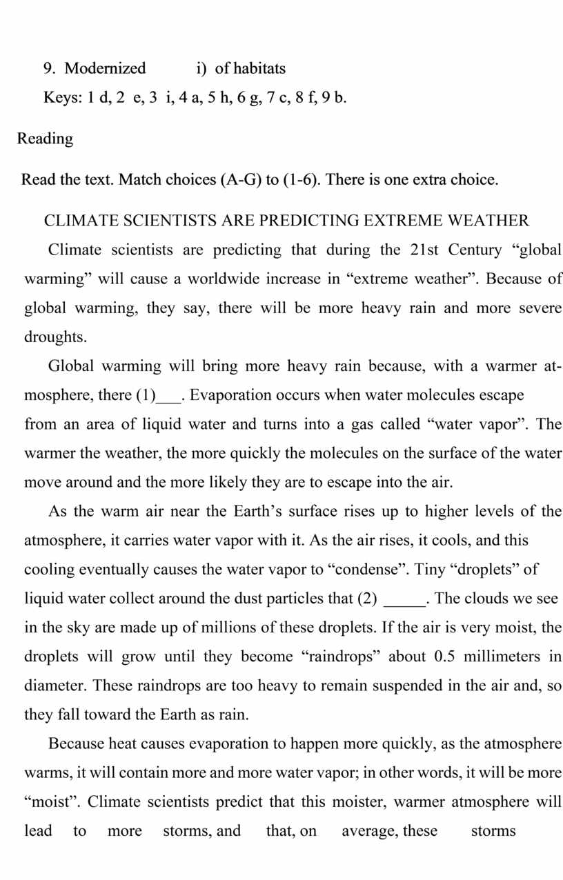 Global warming will bring more heavy rain because, with a warmer atmosphere, there (1)___. Evaporation occurs when water molecules escape