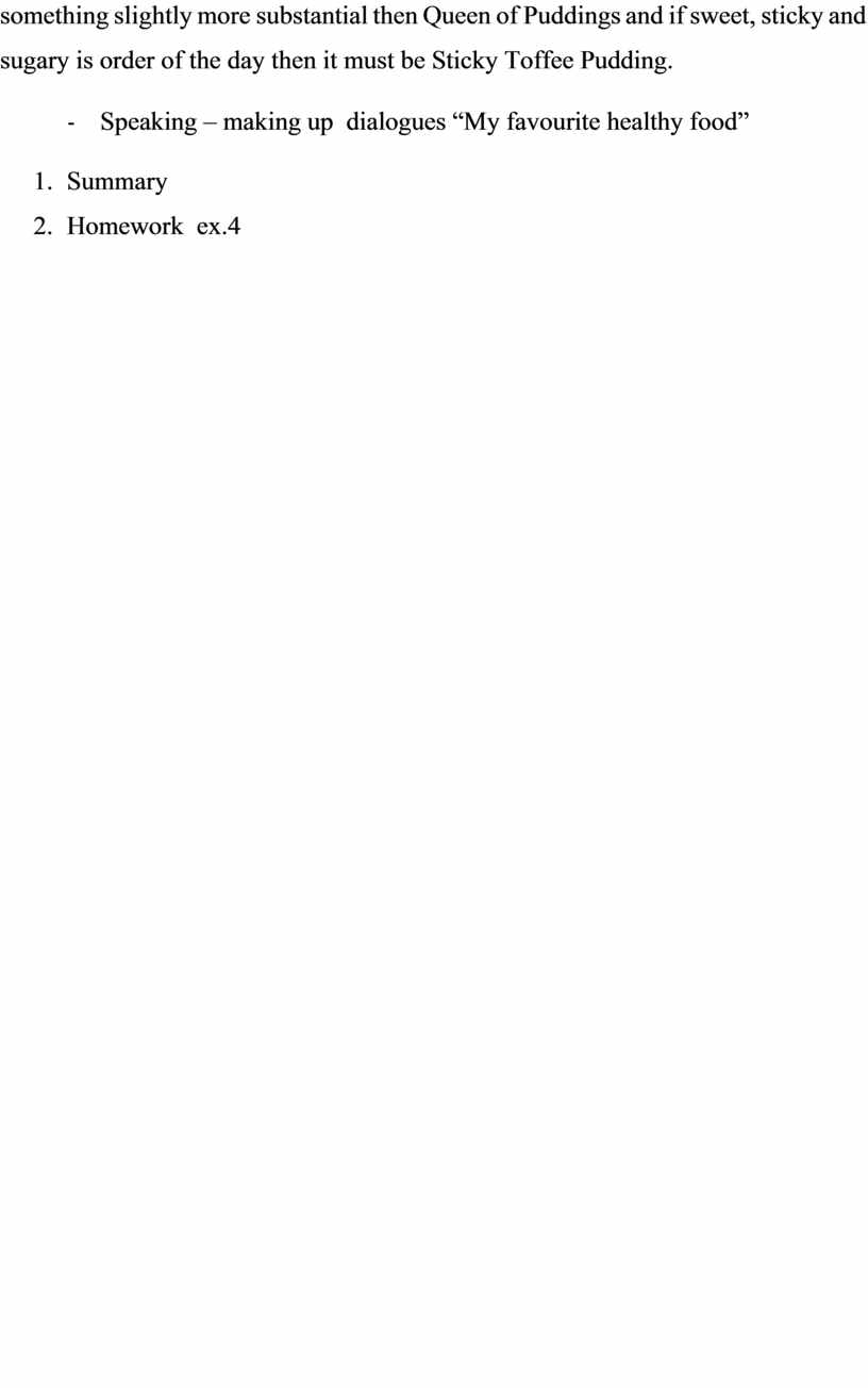 Задачи: расширить кругозор о правильном питании, развивать навыки устной и письменной речи, аудирования, чтения, развивать память, внимание, мышление, воспитывать культуру поведения, чувство коллективизма.