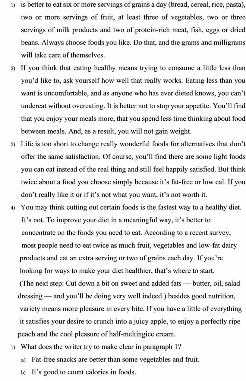 c) Eat more cereal, bread, rice and pasta and you’ll be healthy.