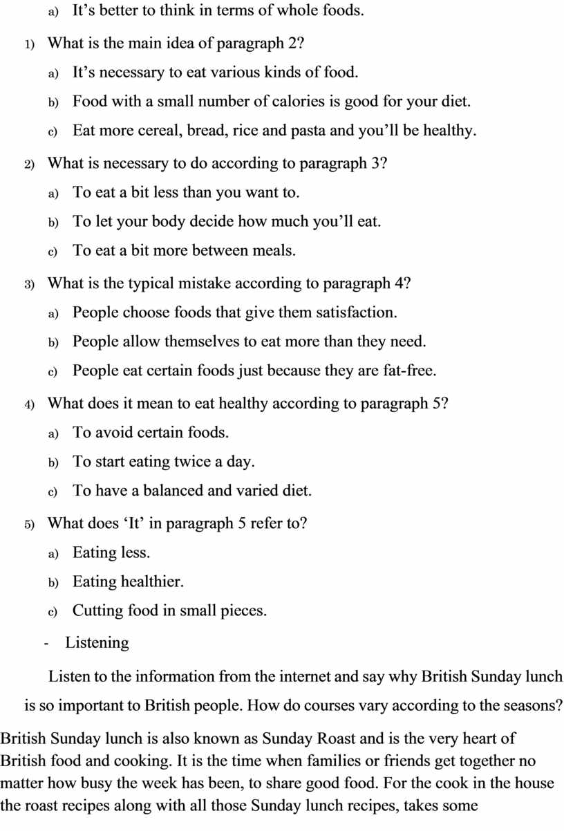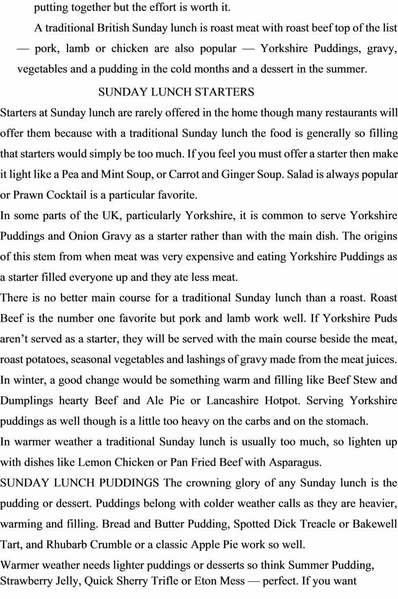 Listen to the information from the internet and say why British Sunday lunch is so important to British people. How do courses vary according to the seasons?