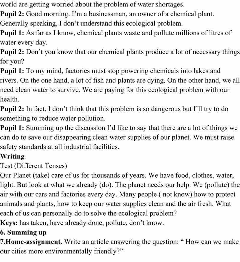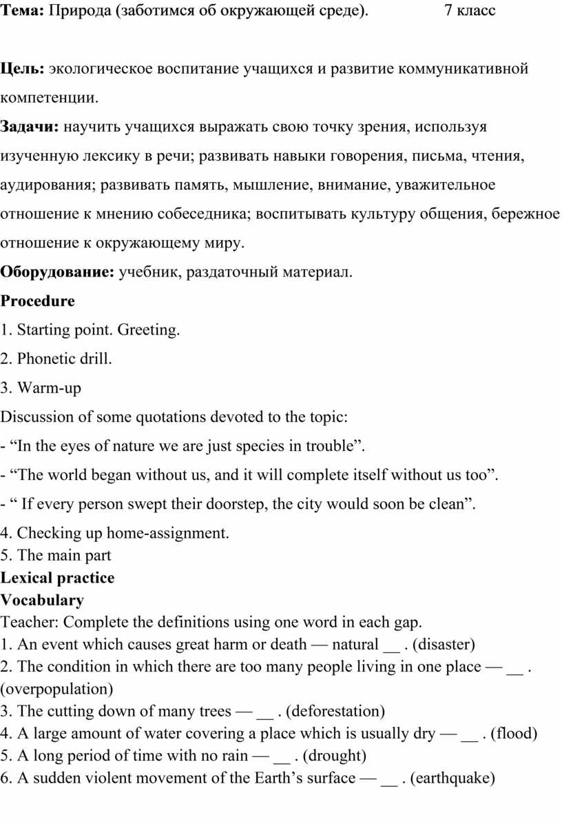 Тема: Природа (заботимся об окружающей среде). 7 класс