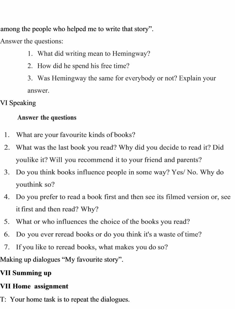 2. What was the last book you read? Why did you decide to read it? Did you like it? Will you recommend it to your friend and parents?