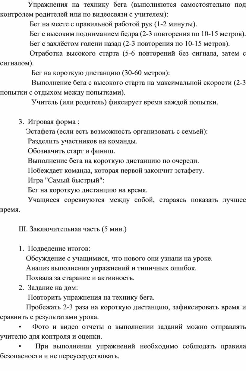 Предоставить индивидуальные задания для учащихся, испытывающих трудности с освоением техники бега.