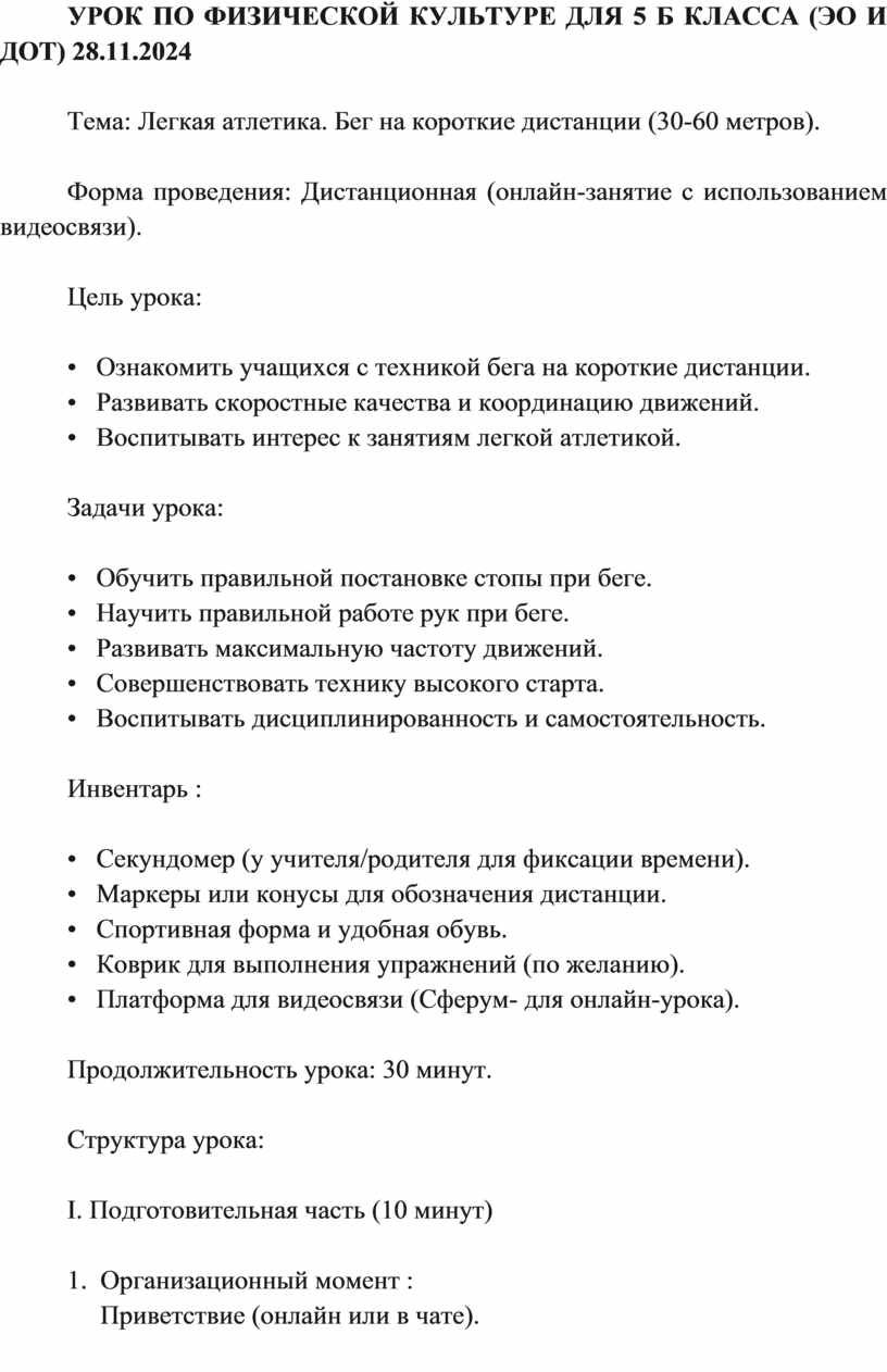 УРОК ПО ФИЗИЧЕСКОЙ КУЛЬТУРЕ ДЛЯ 5 Б КЛАССА (ЭО И ДОТ) 28.11.2024