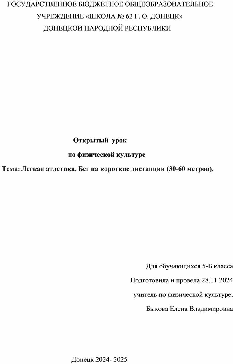 Тема урока: Бег на короткие дистанции (30-60 метров)