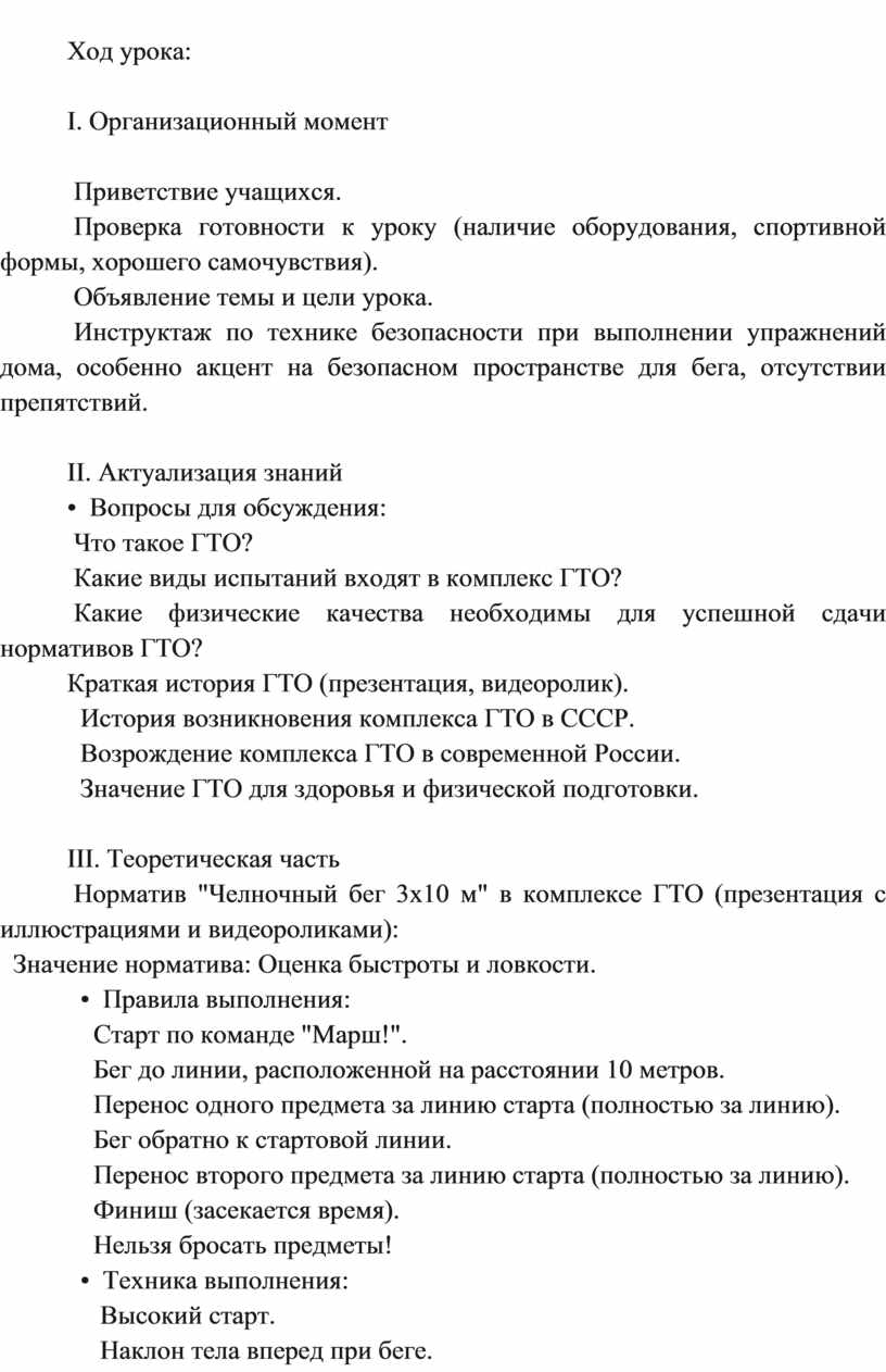 Цель: Ознакомление обучающихся с правилами и техникой выполнения норматива ГТО "Челночный бег 3х10 м" в дистанционном формате.