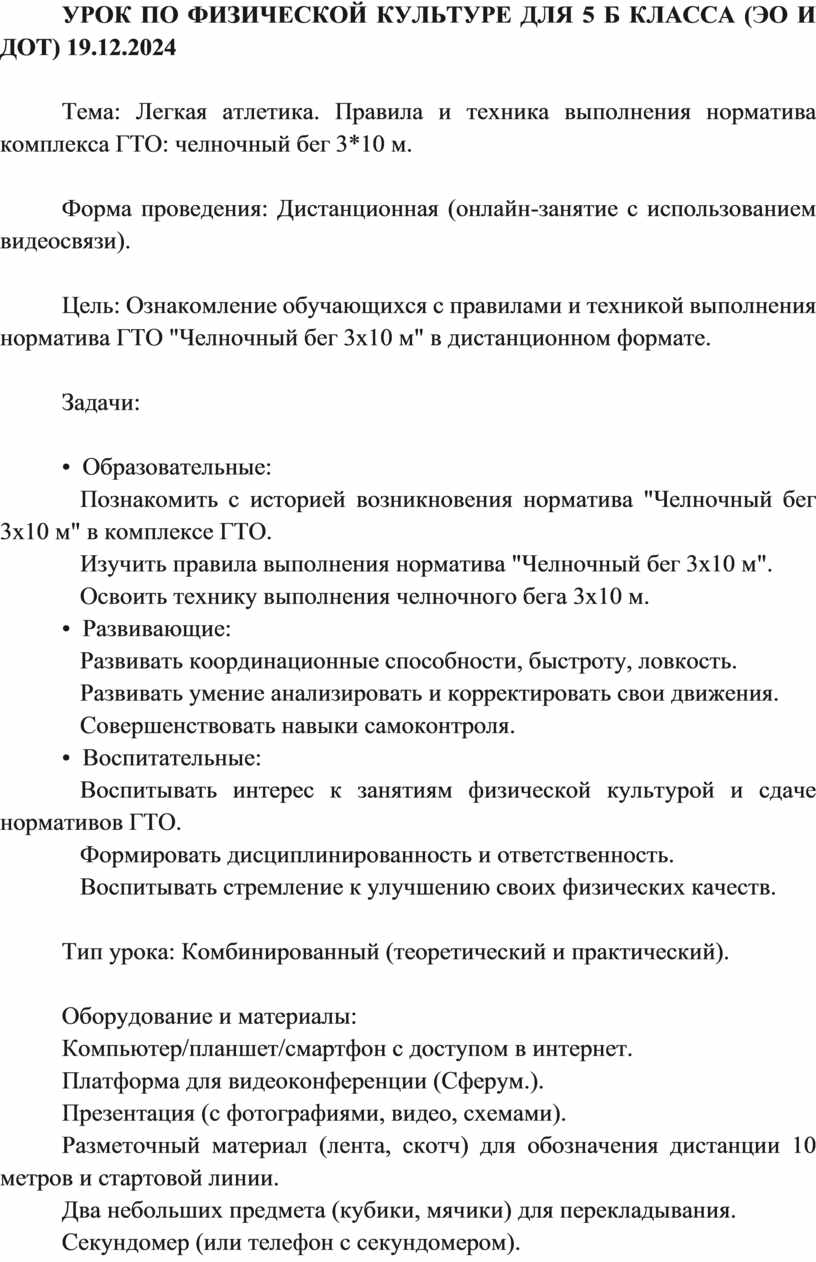 УРОК ПО ФИЗИЧЕСКОЙ КУЛЬТУРЕ ДЛЯ 5 Б КЛАССА (ЭО И ДОТ) 19.12.2024