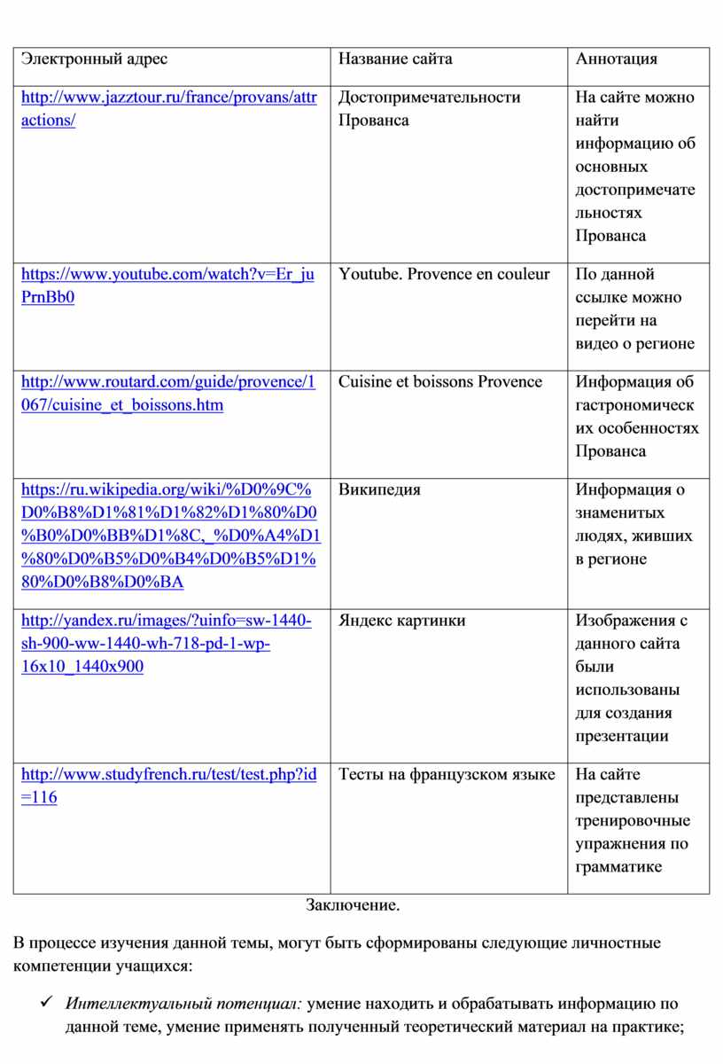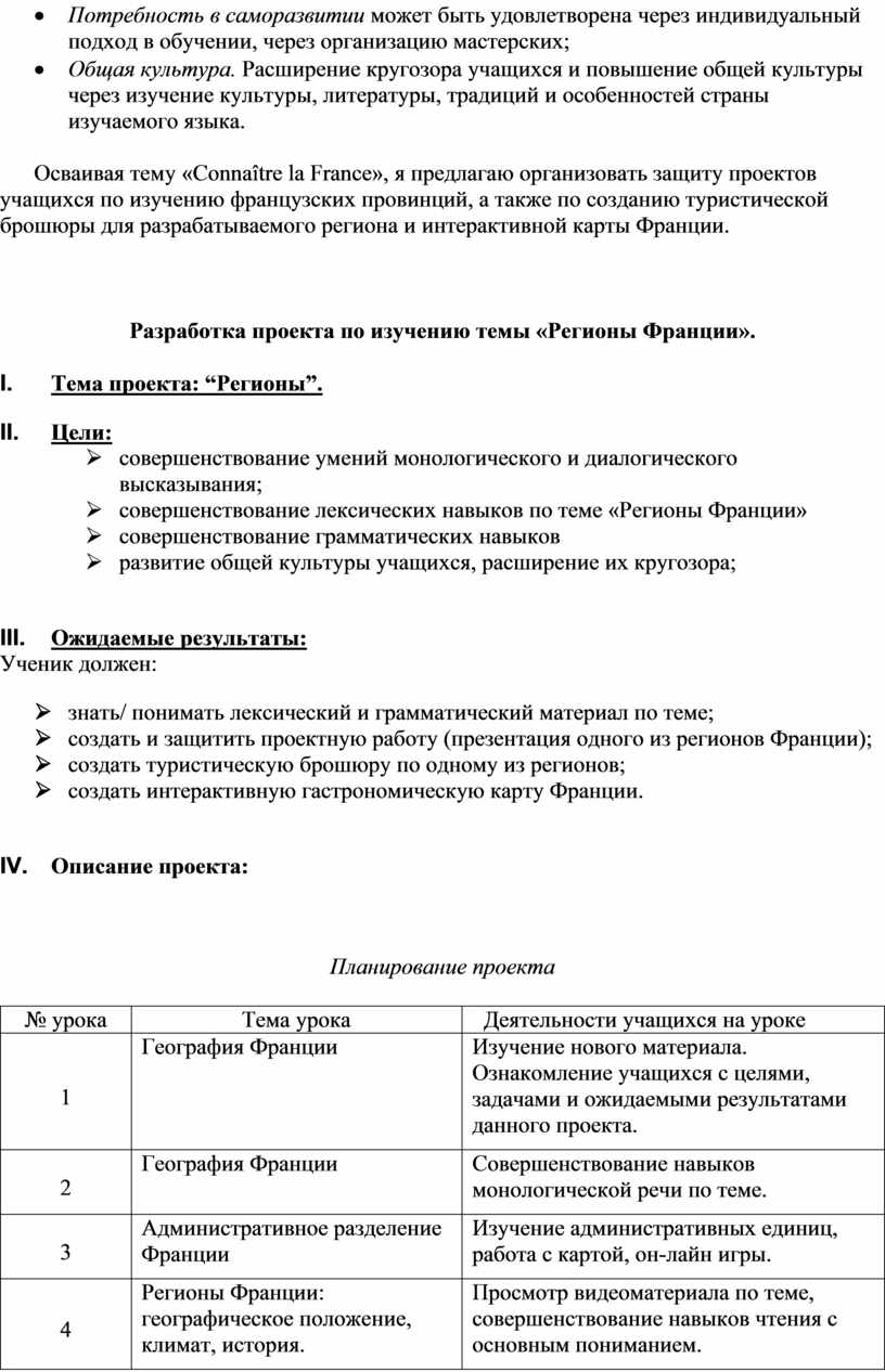 2. Разработка проекта по изучению темы «Регионы Франции».