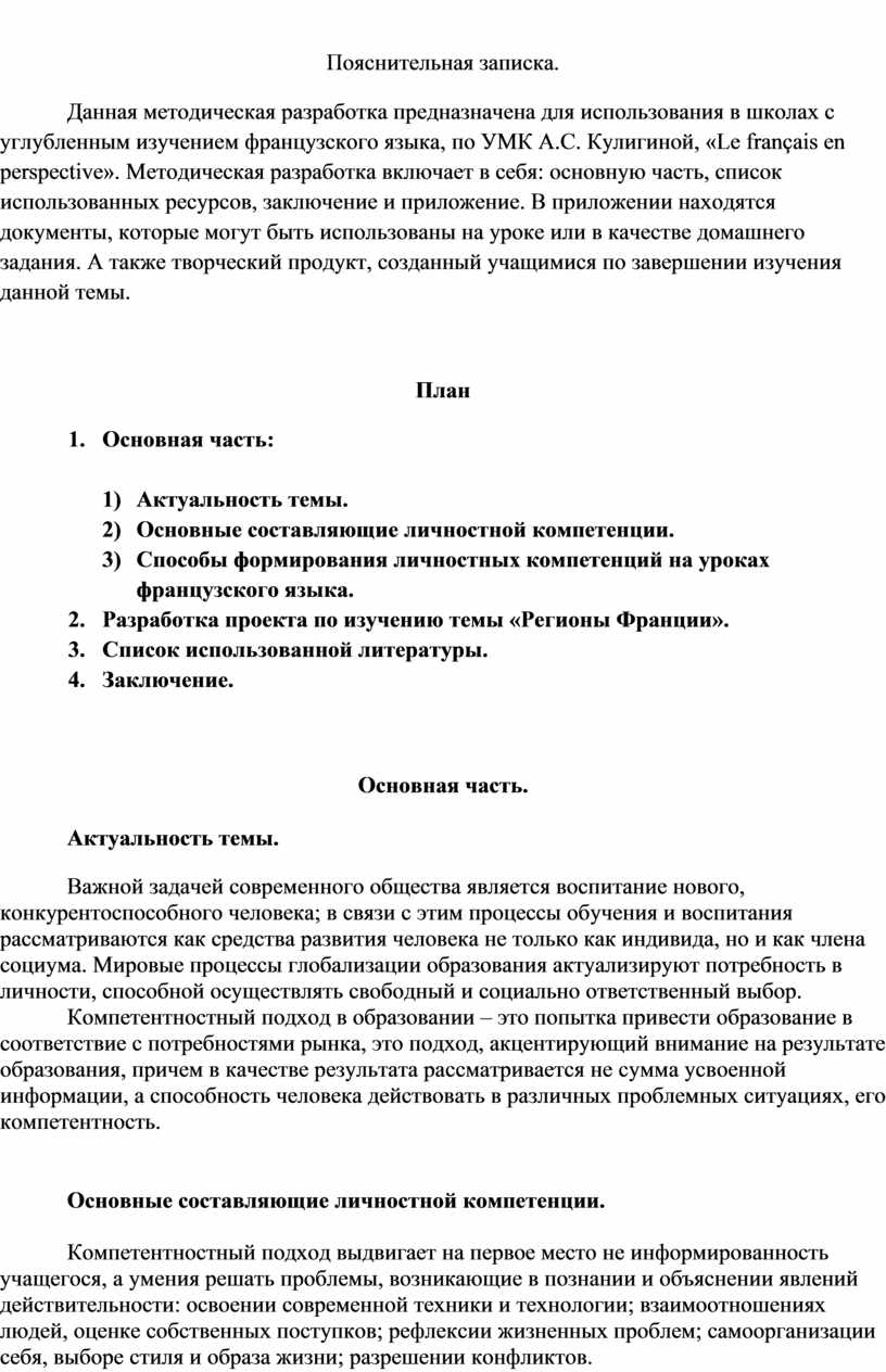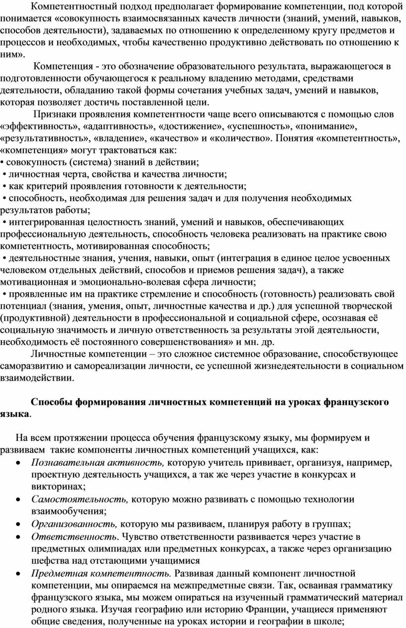 Способы формирования личностных компетенций на уроках французского языка.