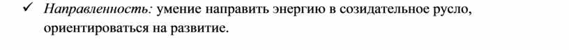 ü Направленность: умение направить энергию в созидательное русло, ориентироваться на развитие.