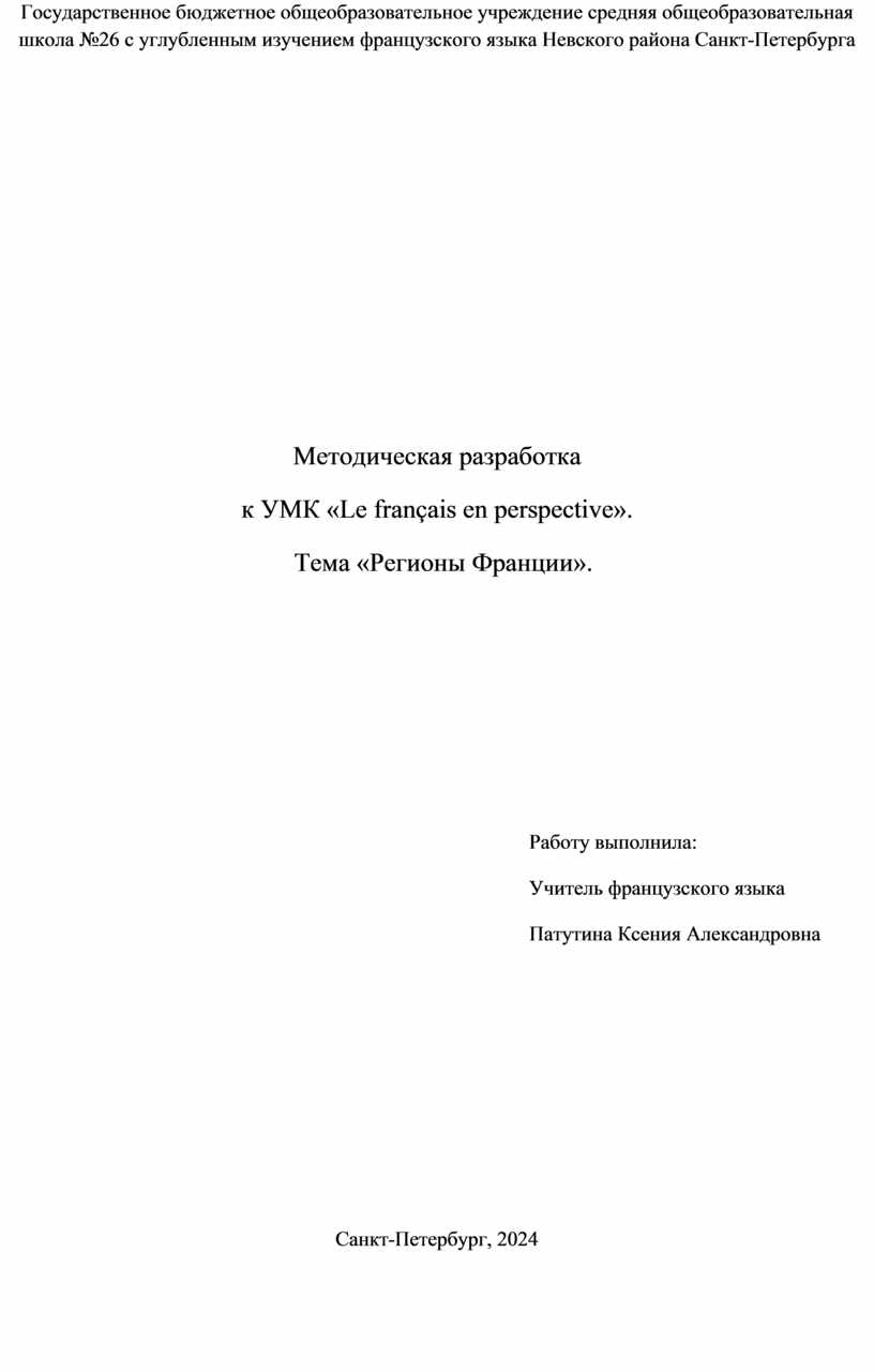 Разработка проекта по изучению темы «Регионы Франции».