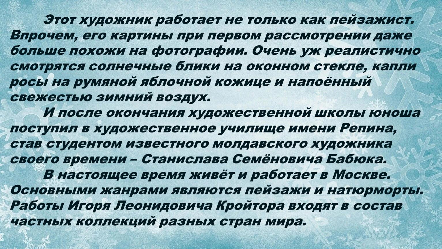 «Творчество современного художника Игоря Леонидовича Кройтора».
