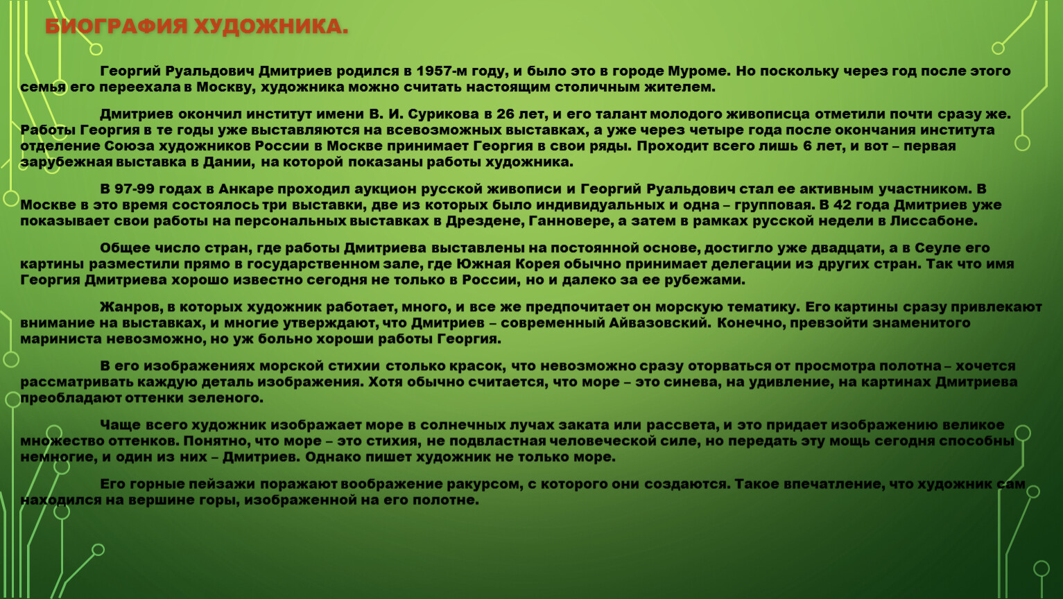 Биография Художника.