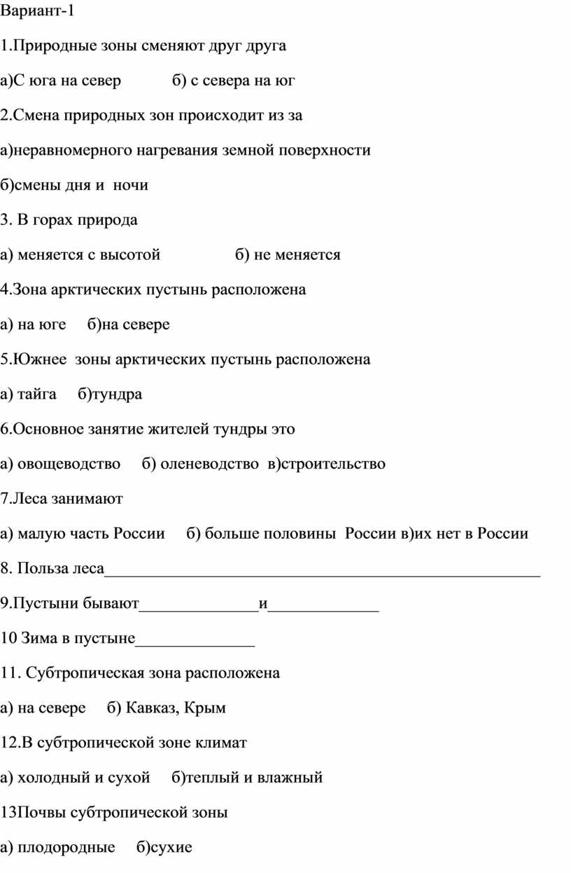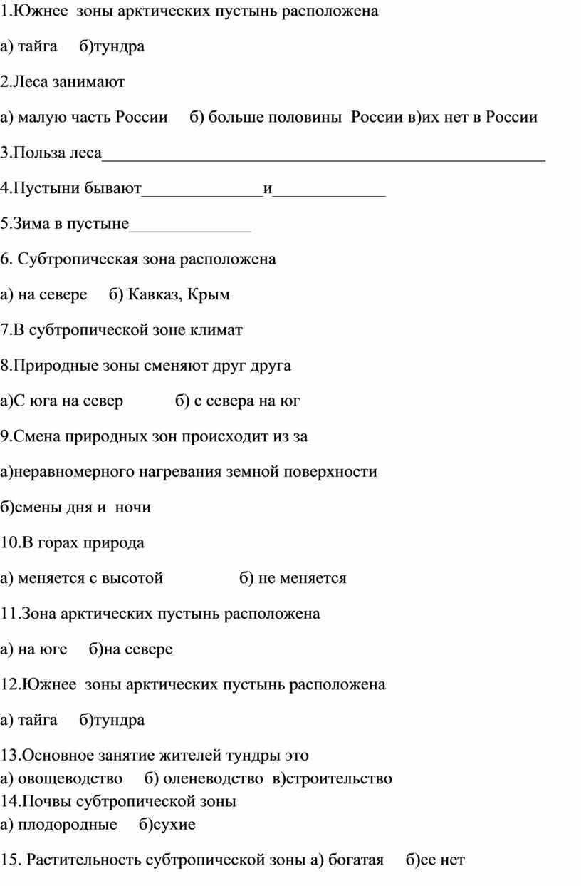 1.Южнее зоны арктических пустынь расположена