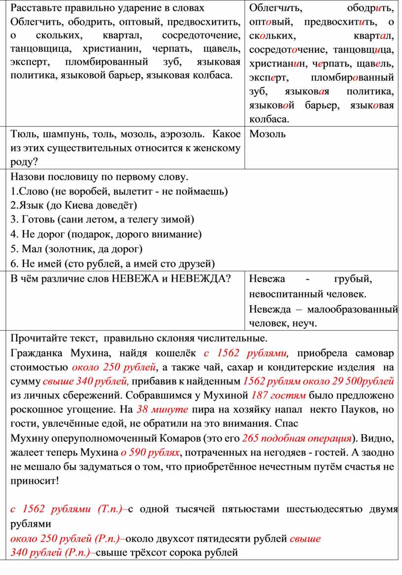 Расставьте правильно ударение в словах Облегчить, ободрить, оптовый, предвосхитить, о скольких, квартал, сосредоточение, танцовщица, христианин, черпать, щавель, эксперт, пломбированный зуб, языковая политика, языковой барьер, языковая колбаса.