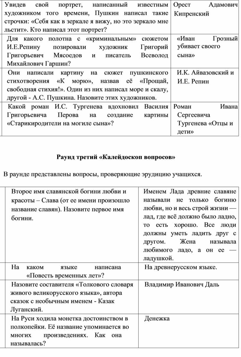 В раунде представлены вопросы, проверяющие эрудицию учащихся.