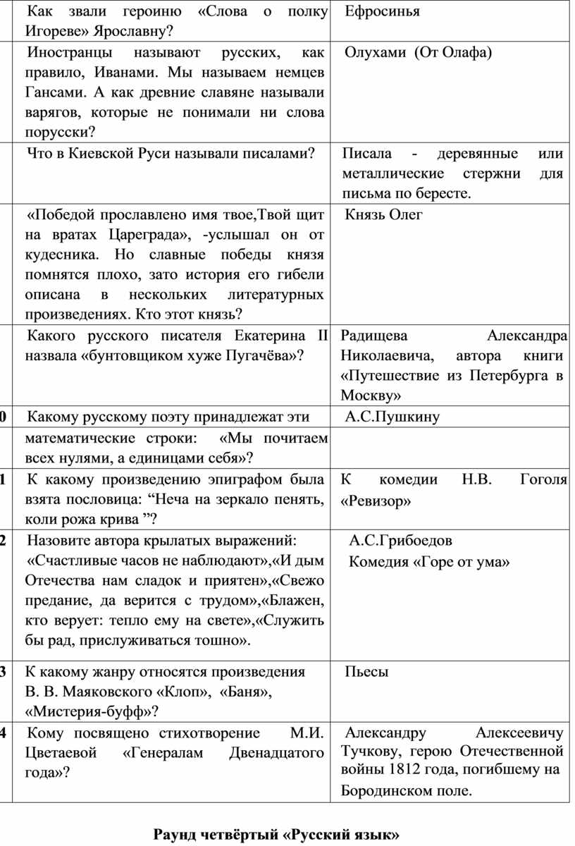 Раунд четвёртый «Русский язык»