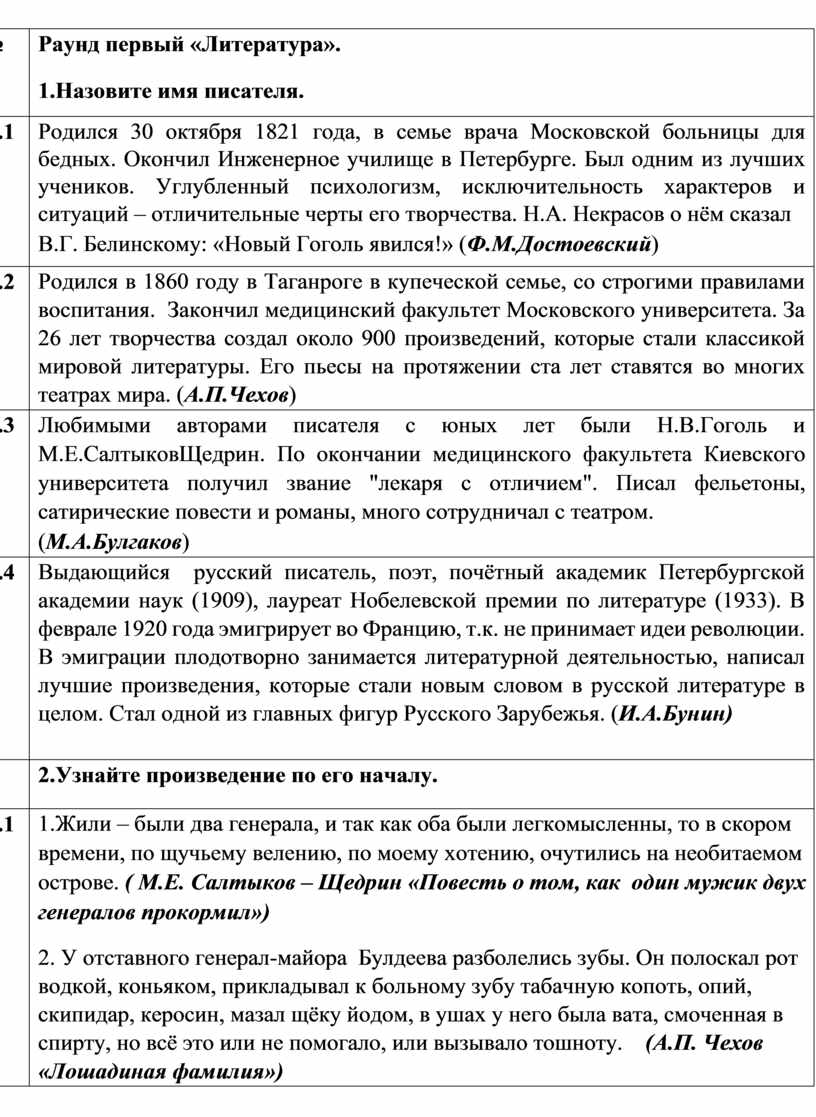 Раунд первый «Литература». 1.Назовите имя писателя. |